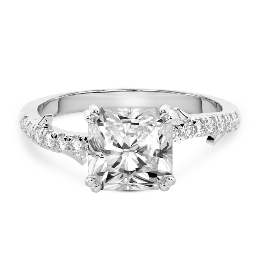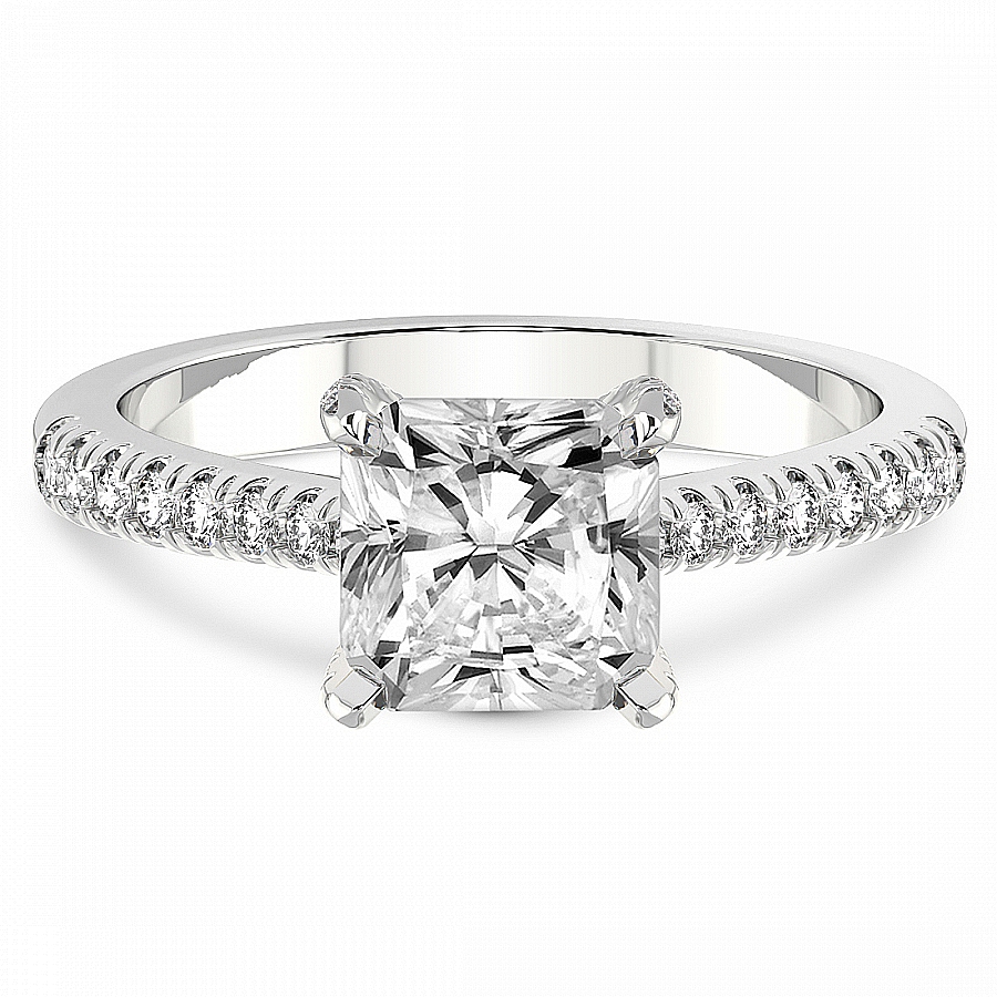 This Brigitte Side Stone Princess Ring is a Radiant shape ring Engagement type 18k White Gold
