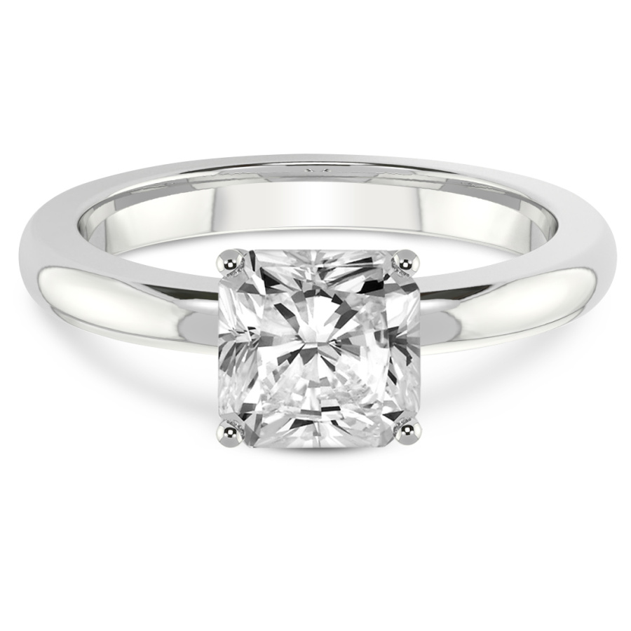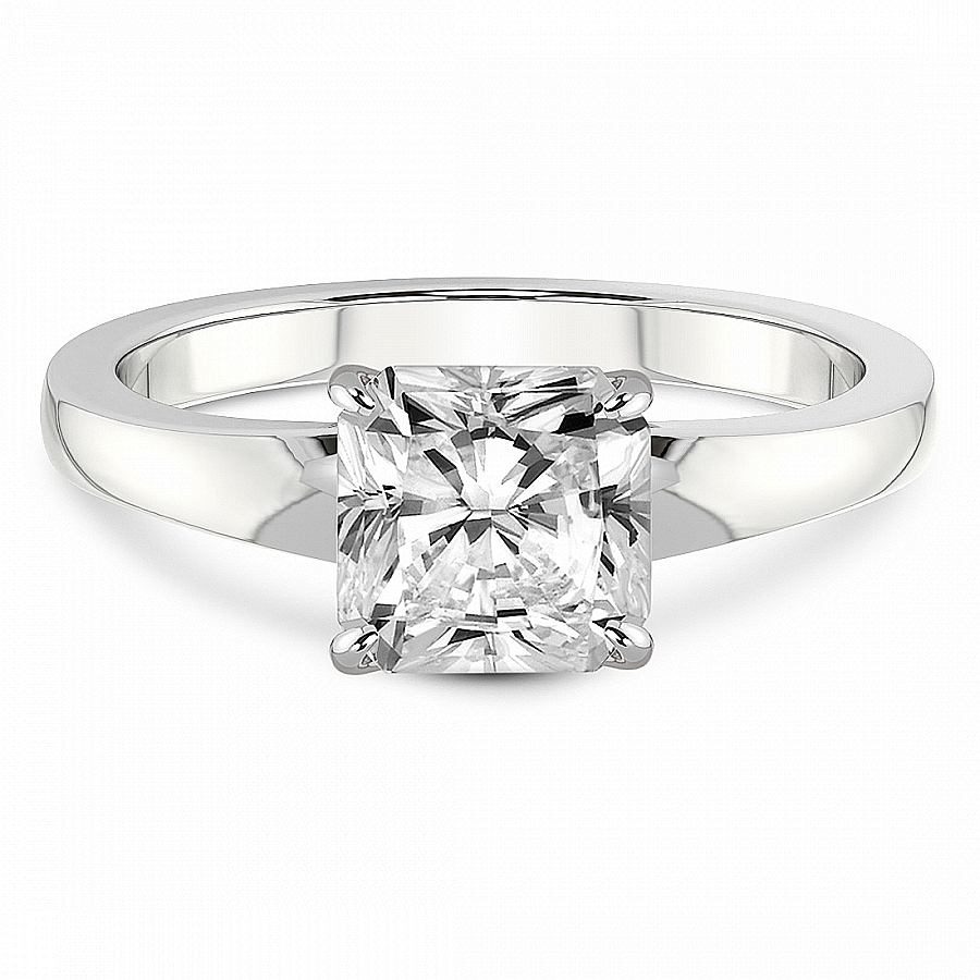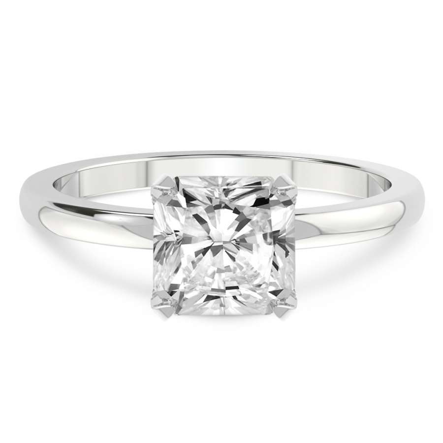 This MADEILA Flat Band Solitaire Ring is a Radiant shape ring Engagement type 18k White Gold