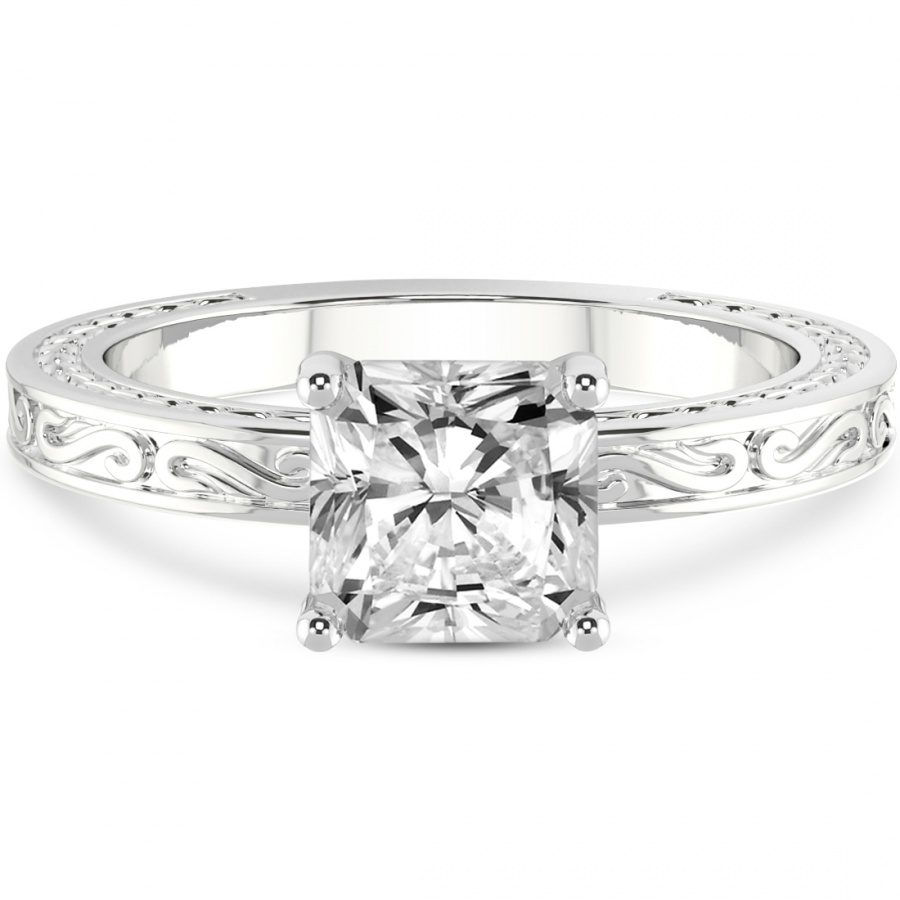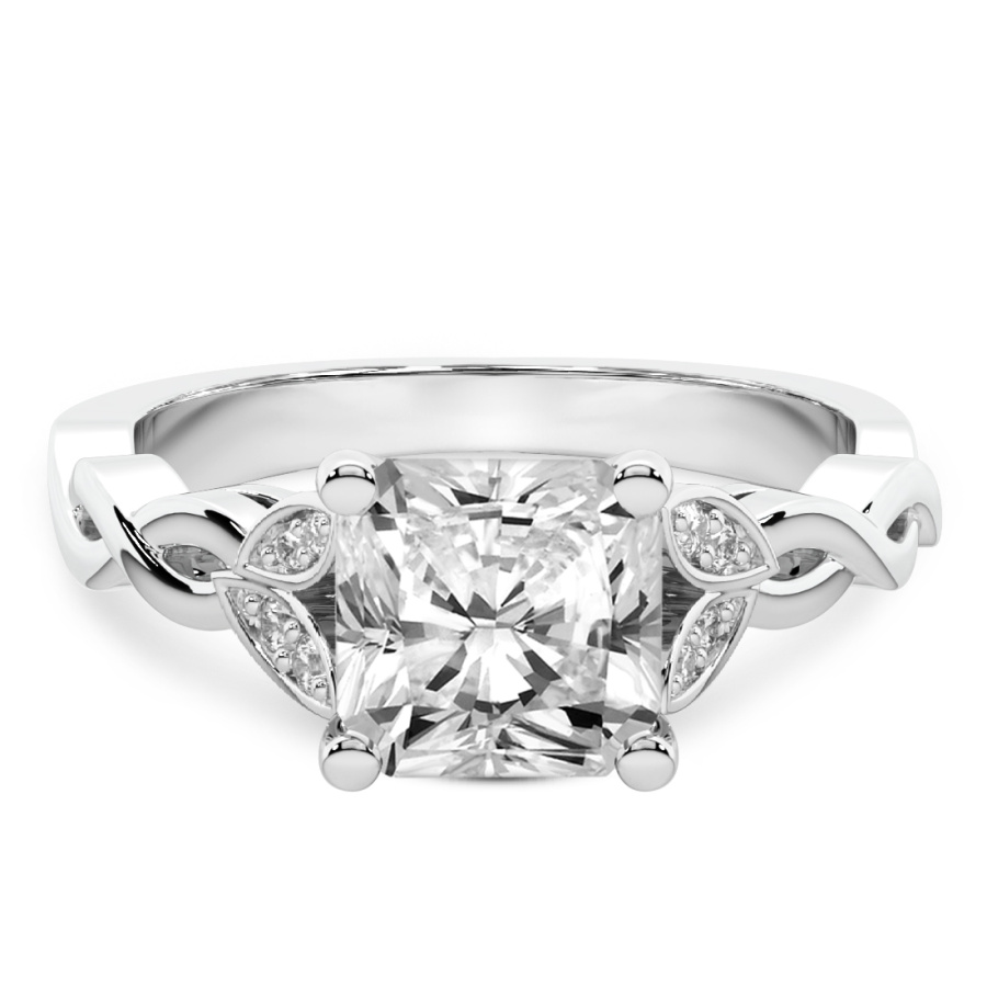 This Daisy Leaf Petal Solitaire Diamond Ring is a Radiant shape ring Engagement type 18k White Gold