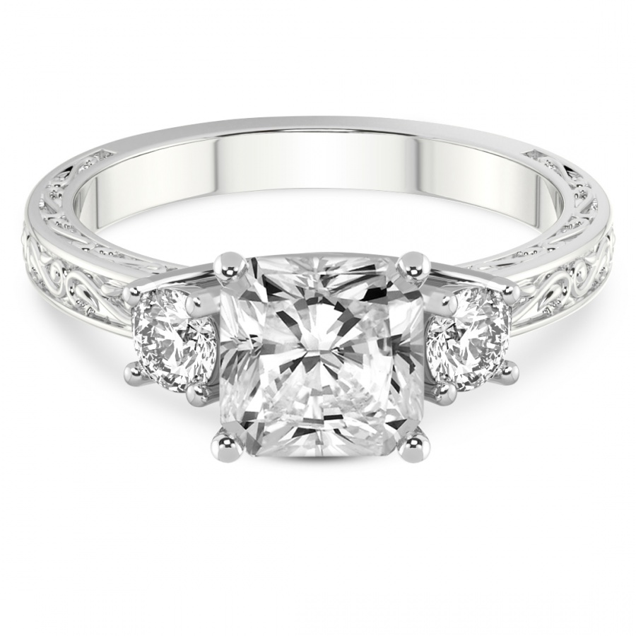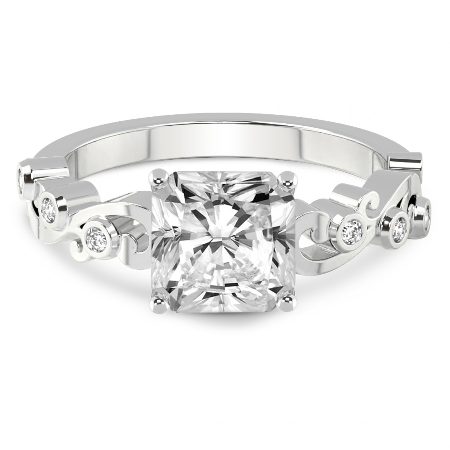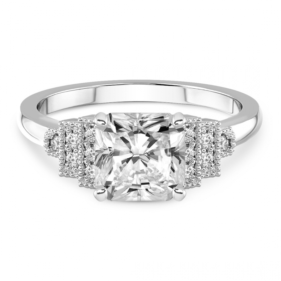 This Florence Side Stone Diamond Ring is a Radiant shape ring Engagement type 18k White Gold