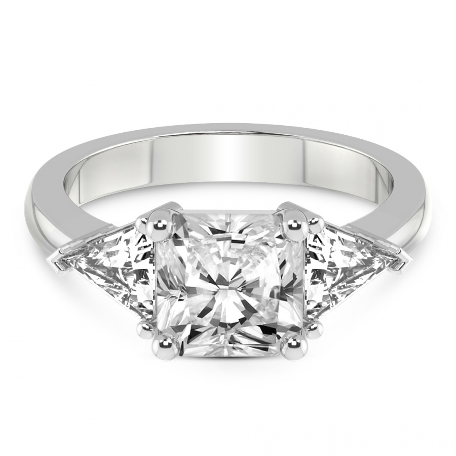 This Séverine Three Stone Side Trillion Diamond Ring is a Radiant shape ring Engagement type 18k White Gold