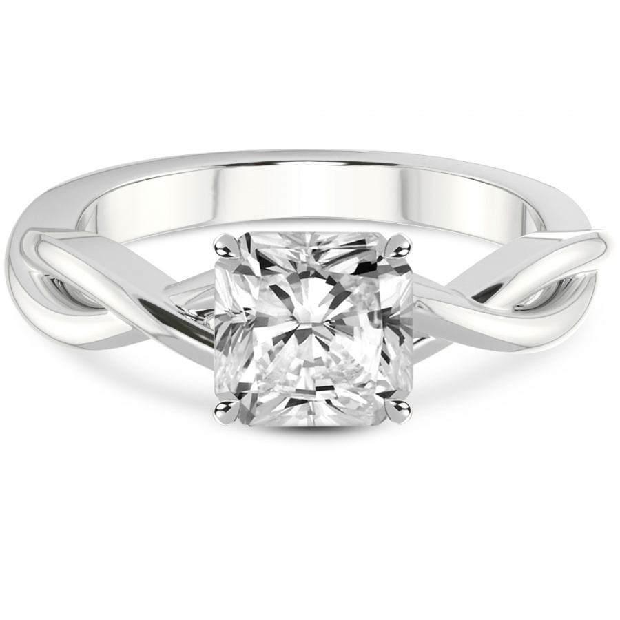 This Mélanie Criss Cross Solitaire Ring is a Radiant shape ring Engagement type 18k White Gold