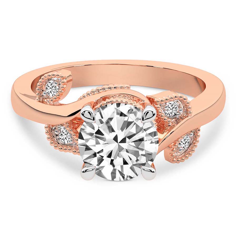 This Paisley Fern Side Stone Ring is a Round shape ring Engagement type 18k Rose Gold