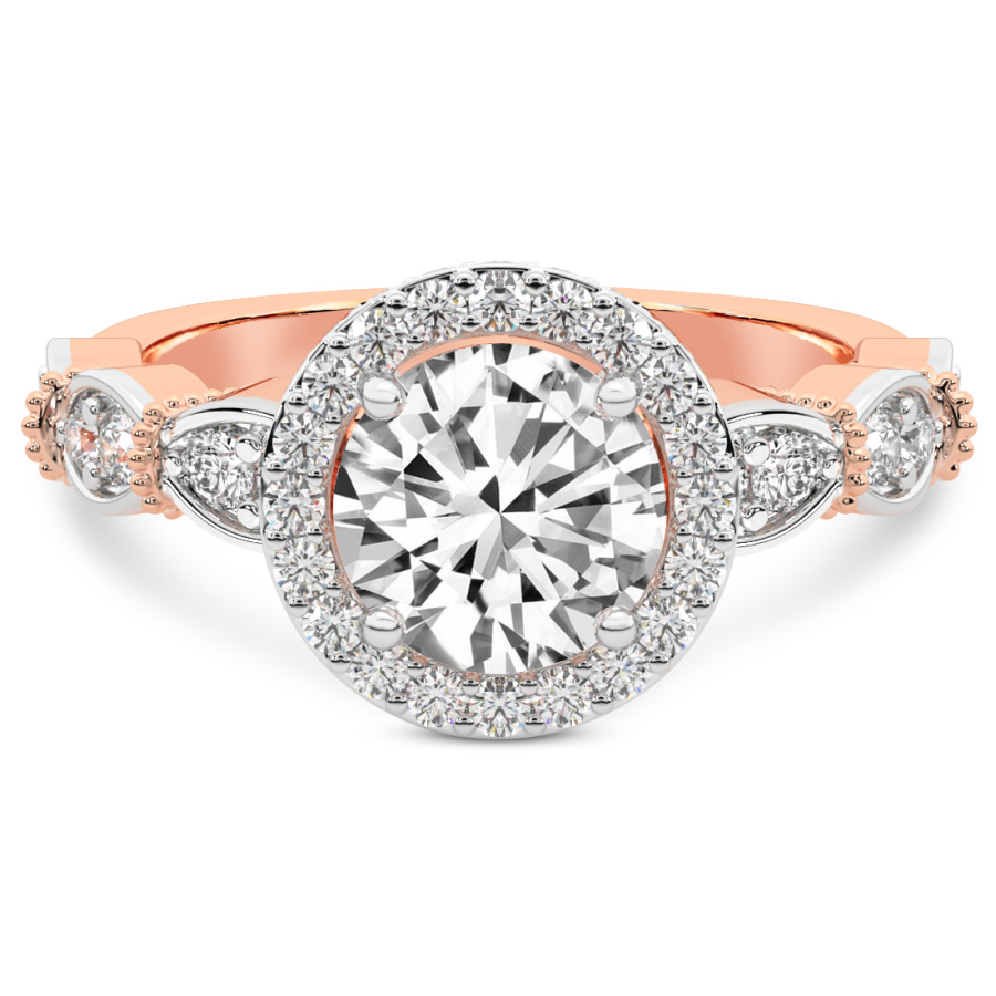 This Zinnia Side Stones Halo Diamond Ring is a Round shape ring Engagement type 18k Rose Gold