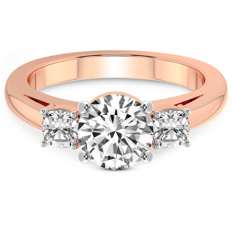 This Maya Three Stone Side Cushion Diamond Ring is a Round shape ring Engagement type 18k Rose Gold