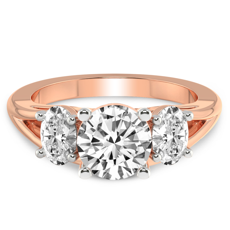This Famie Three Stone Side Oval Diamond Ring is a Round shape ring Engagement type 18k Rose Gold