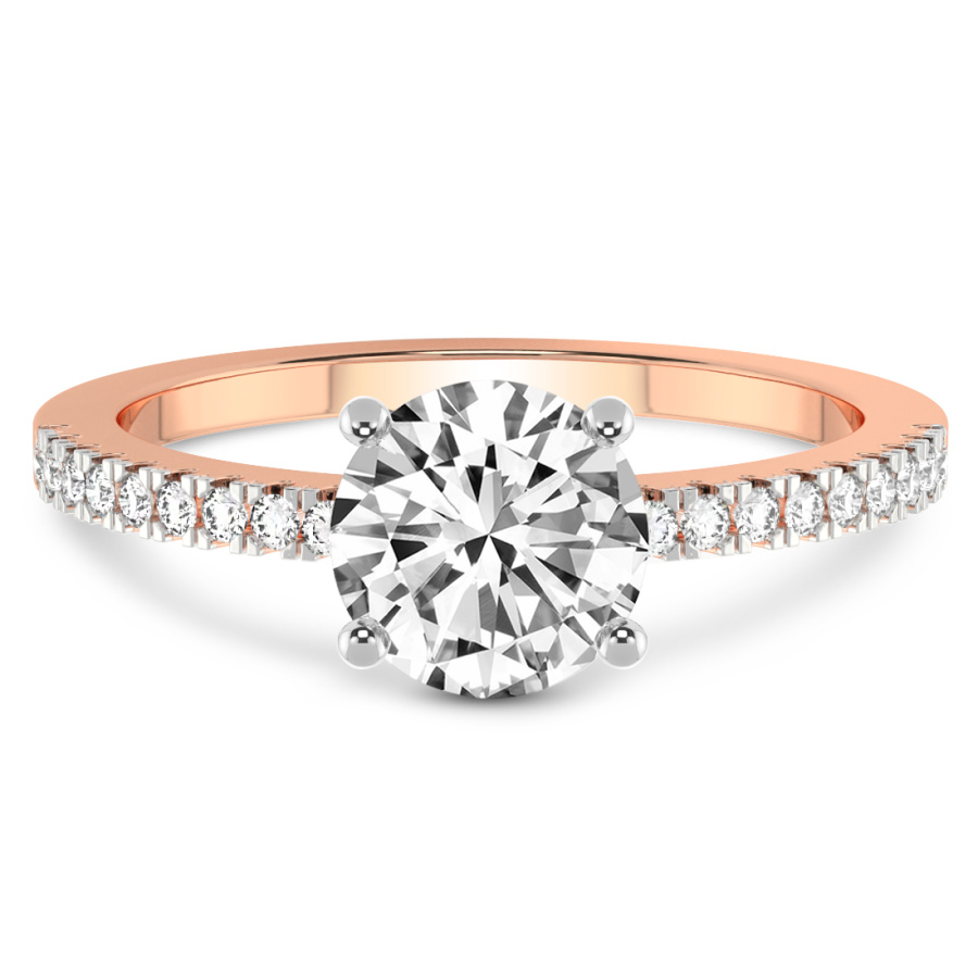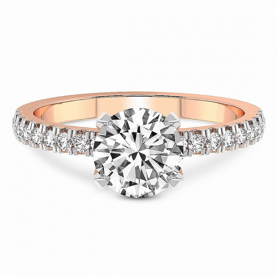 This Cora Diamond Studded Petite Solitaire Diamond Ring is a Round shape ring Engagement type 18k Rose Gold