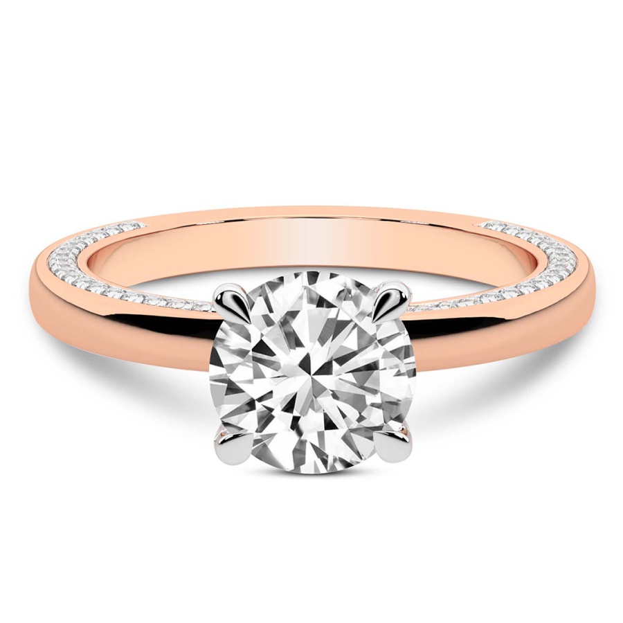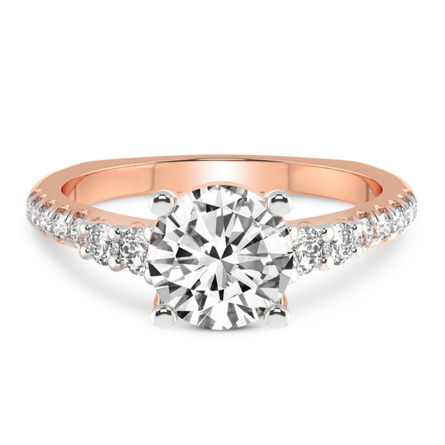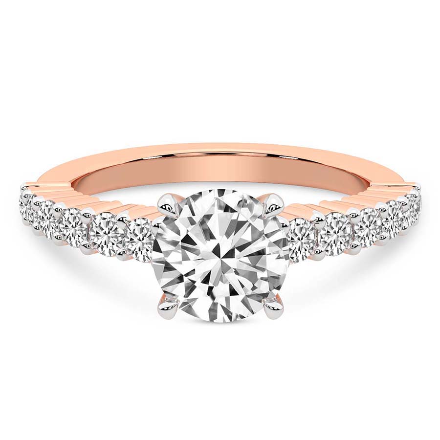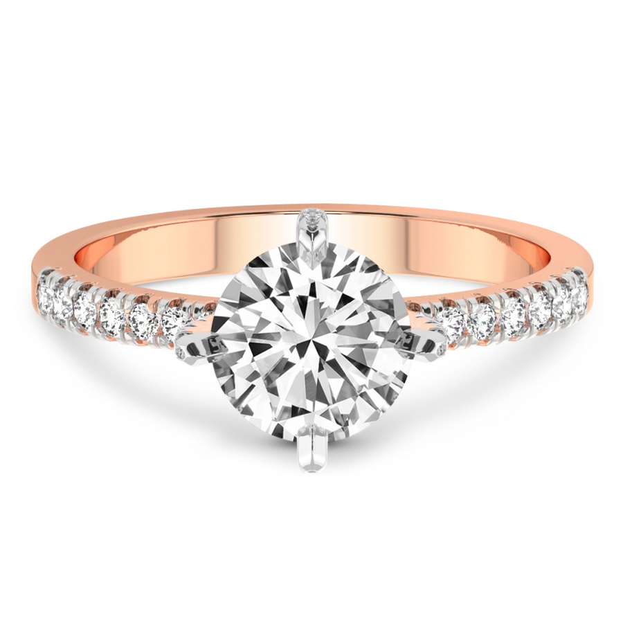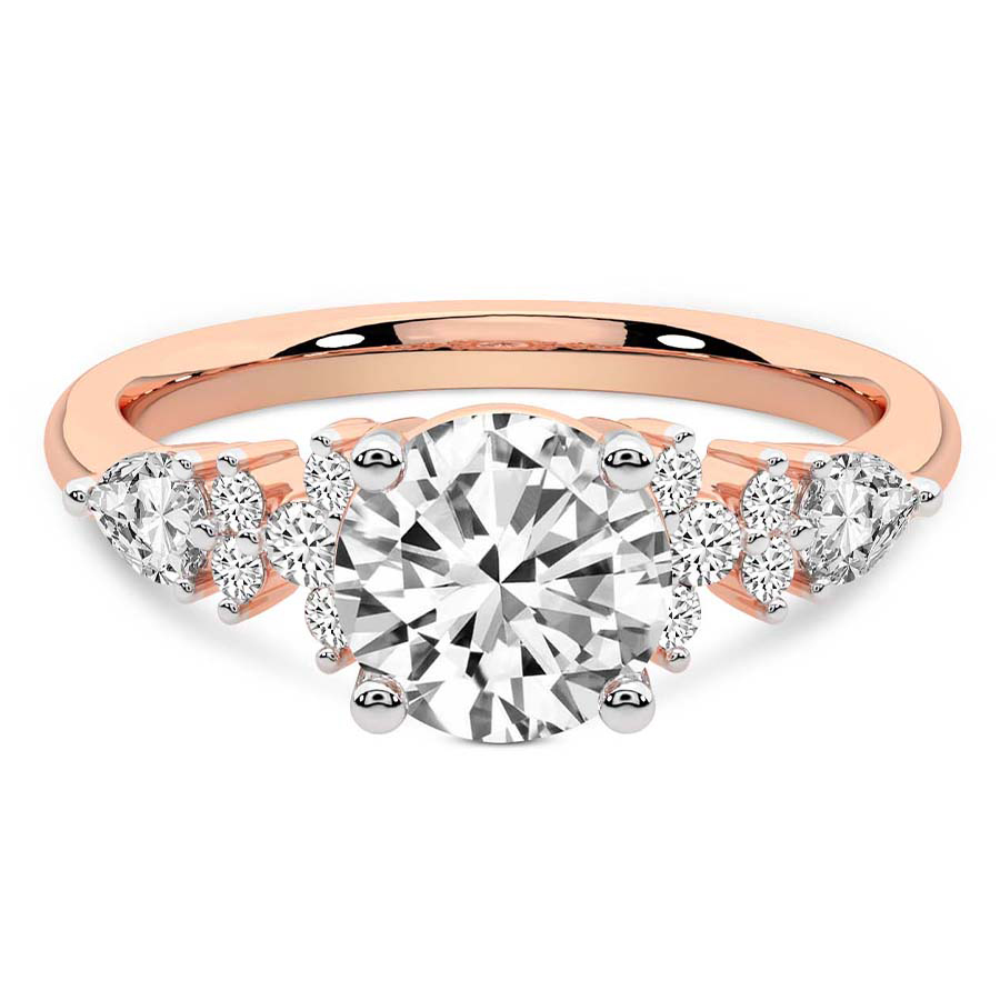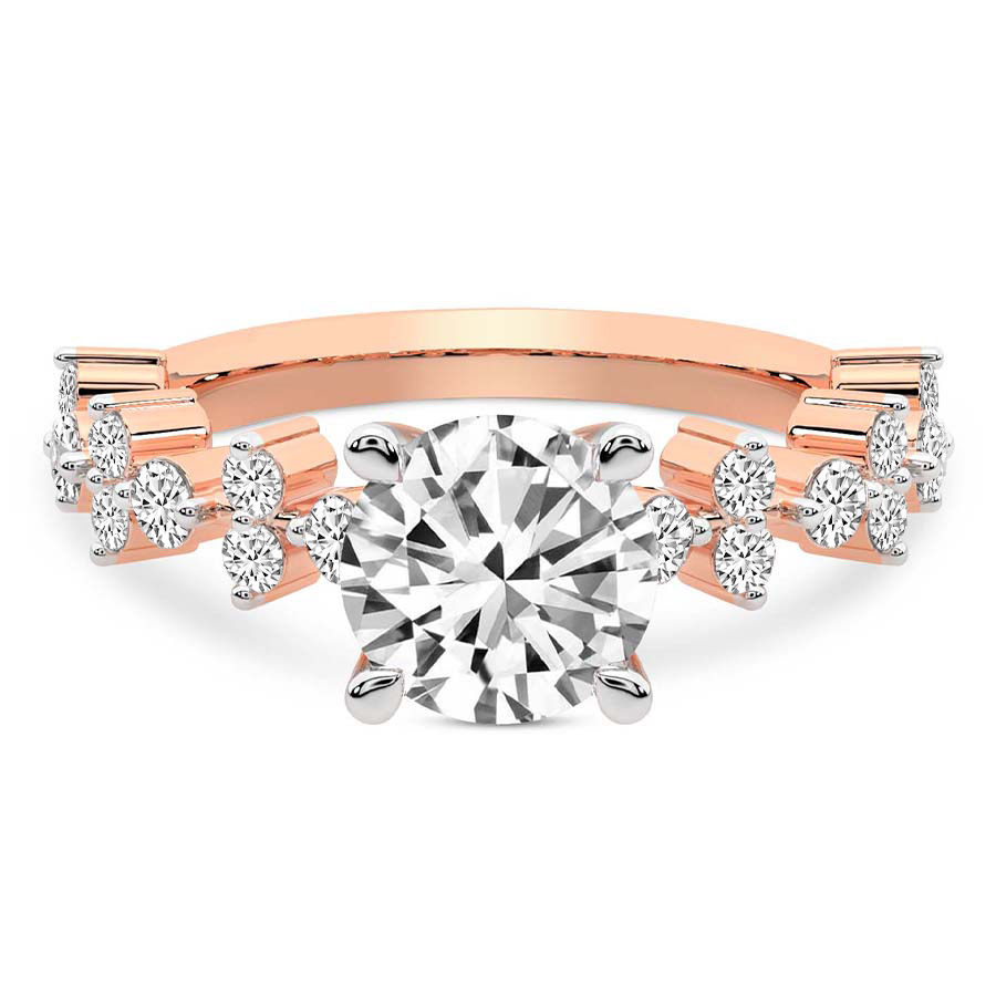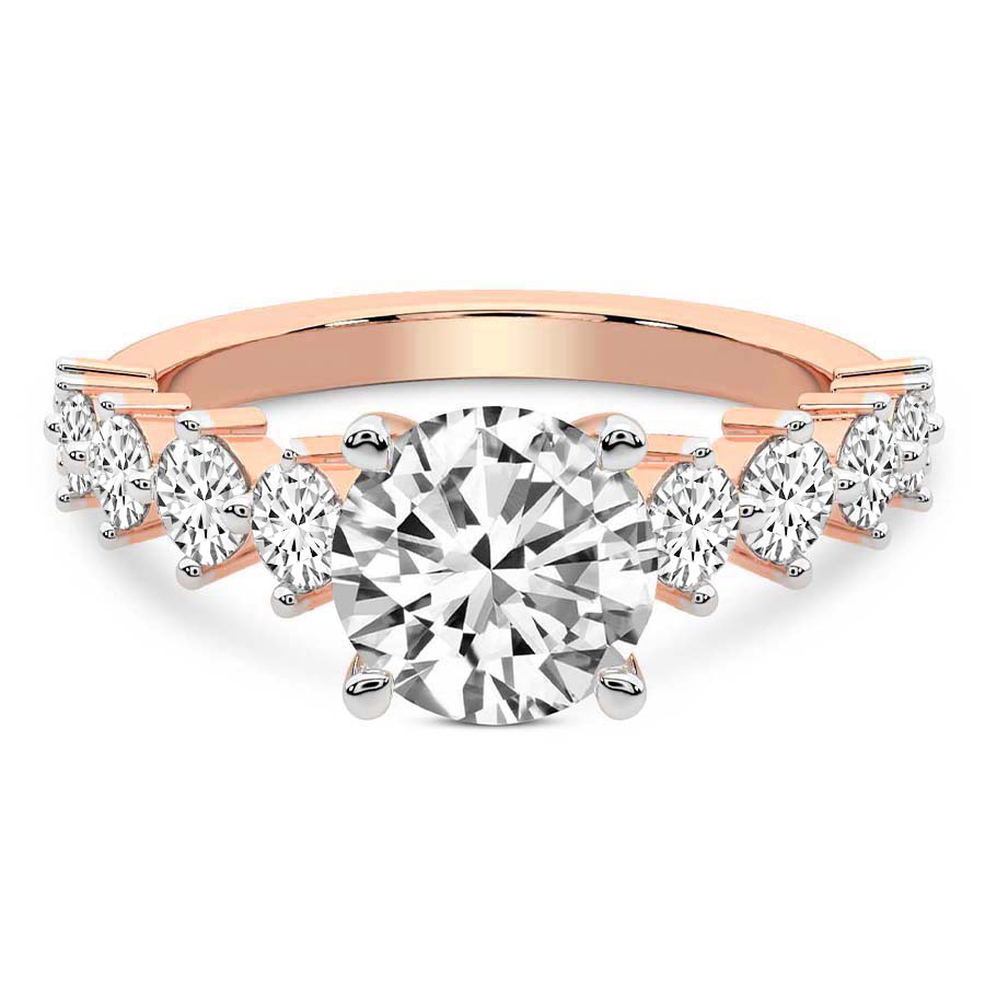 This Madelyn Four Claw Side Stone Ring is a Round shape ring Engagement type 18k Rose Gold
