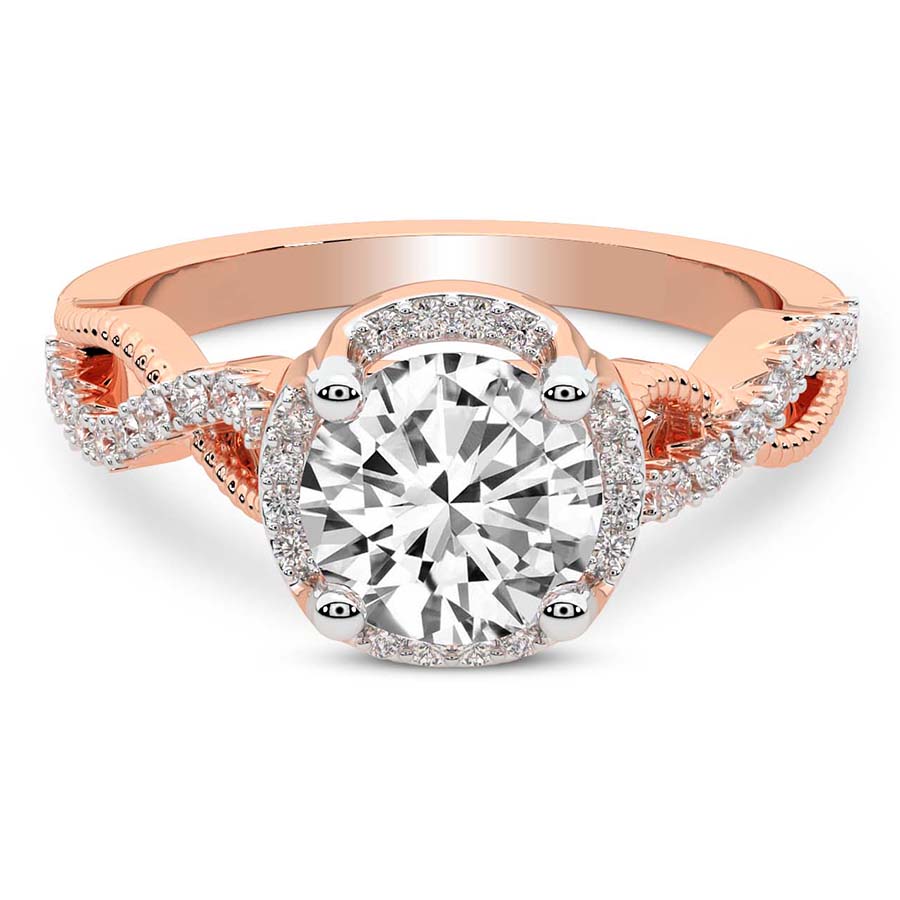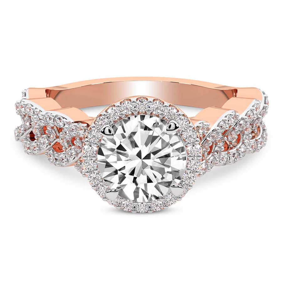 This Serenity Halo Celtic Knot Diamond Ring is a Round shape ring Engagement type 18k Rose Gold
