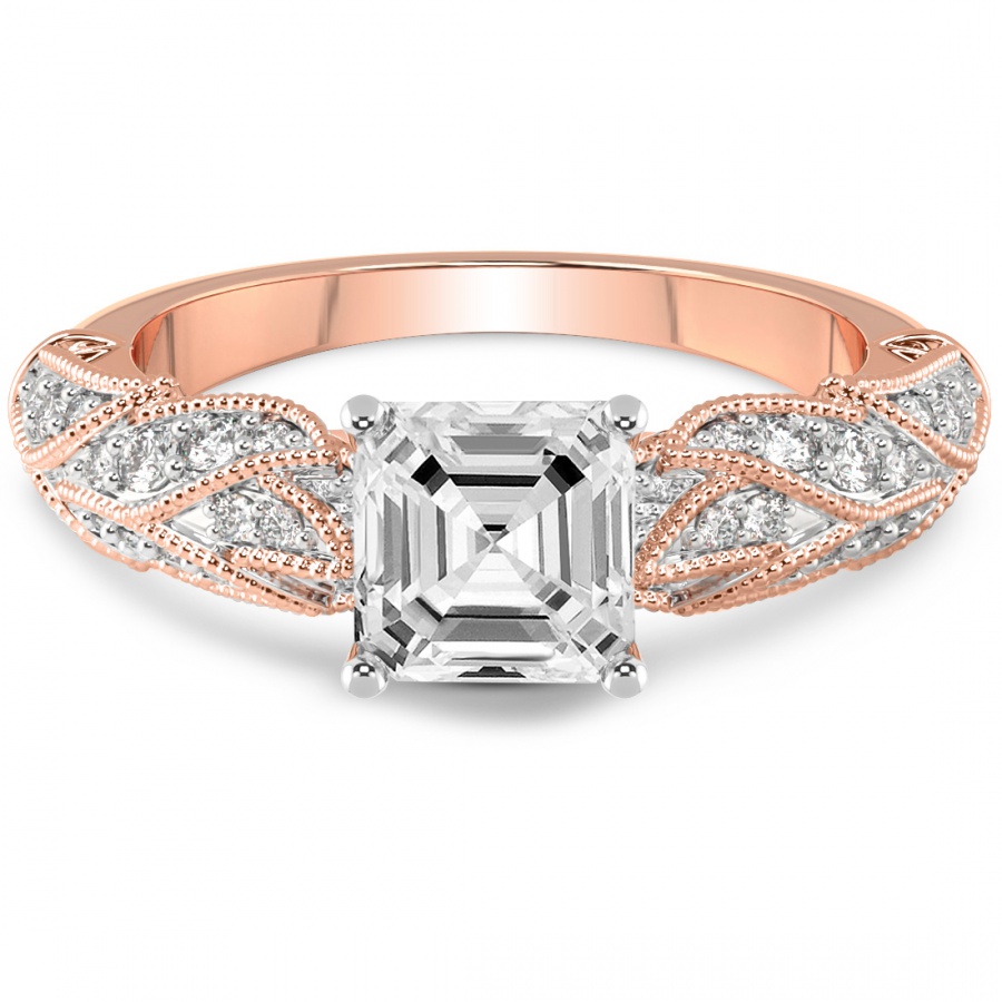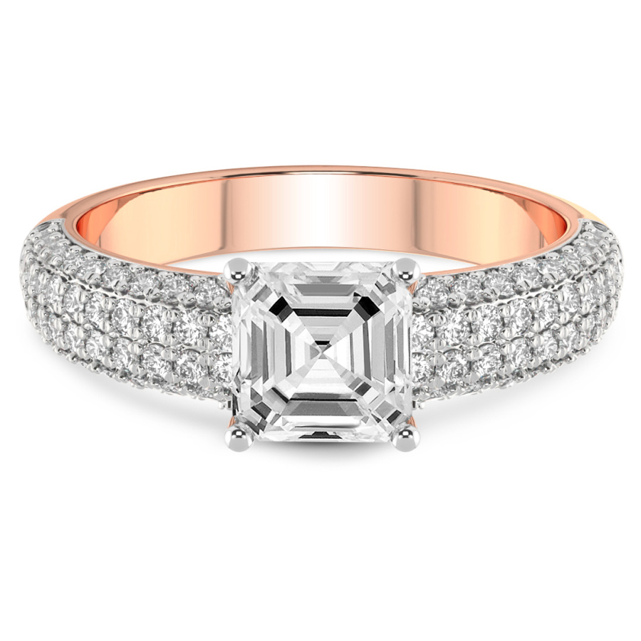 This Clementine Side Cuff Lab Diamond Ring is a Asscher shape ring Engagement type 18k Rose Gold