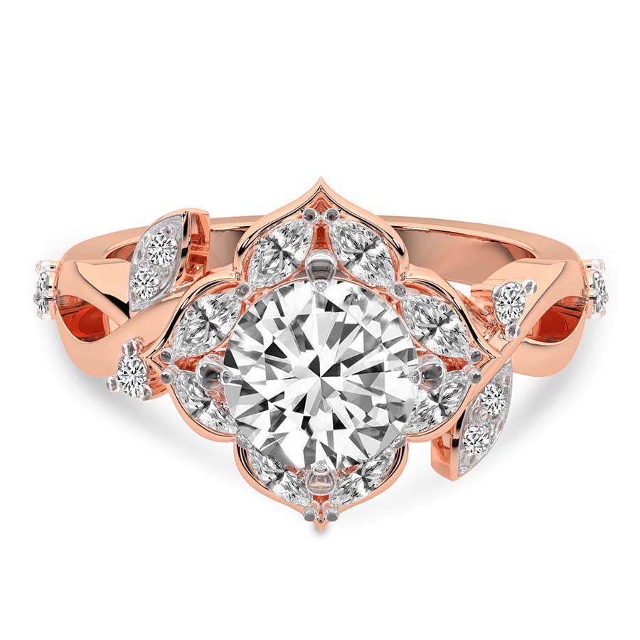 This Dahlia Solitaire Diamond Ring is a Round shape ring Engagement type 18k Rose Gold