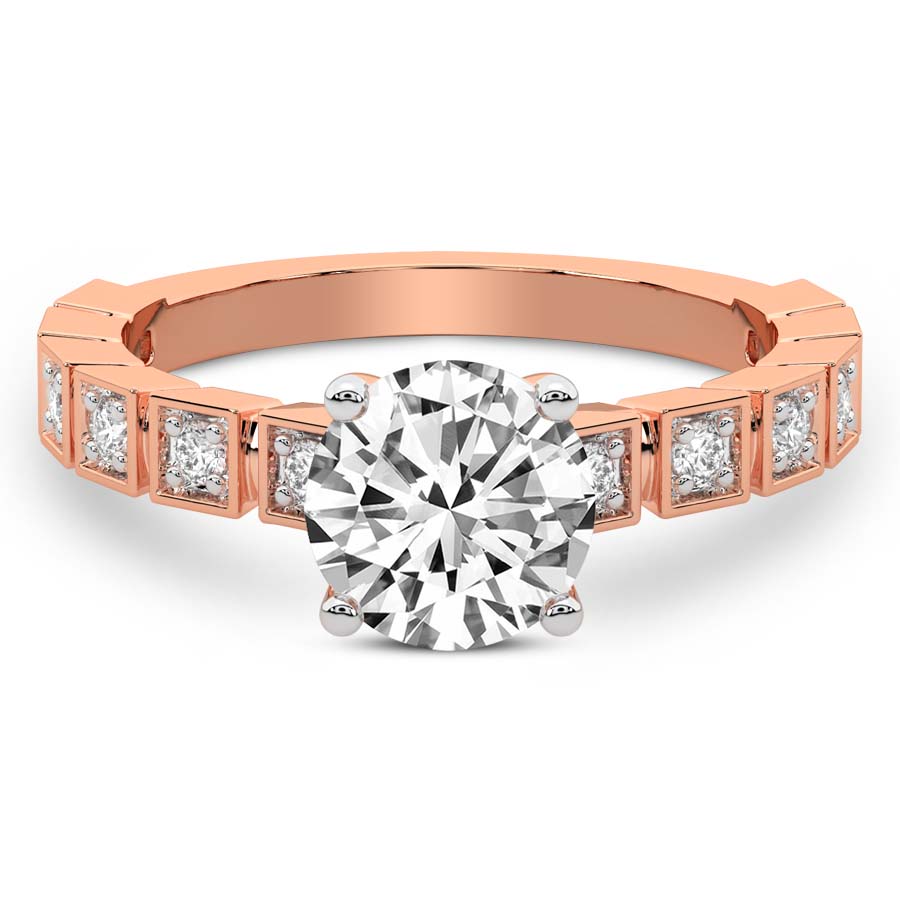 This Laila Tapering Side Stone Ring is a Round shape ring Engagement type 18k Rose Gold