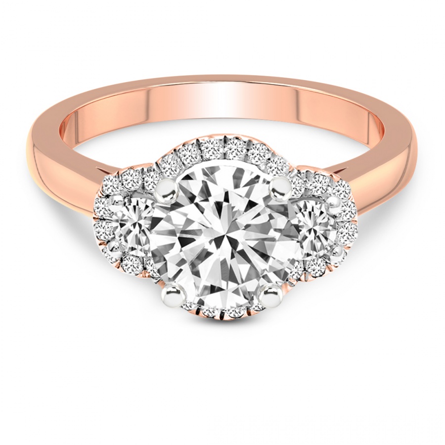 This Marley Three Stone Halo Ring is a Round shape ring Engagement type 18k Rose Gold