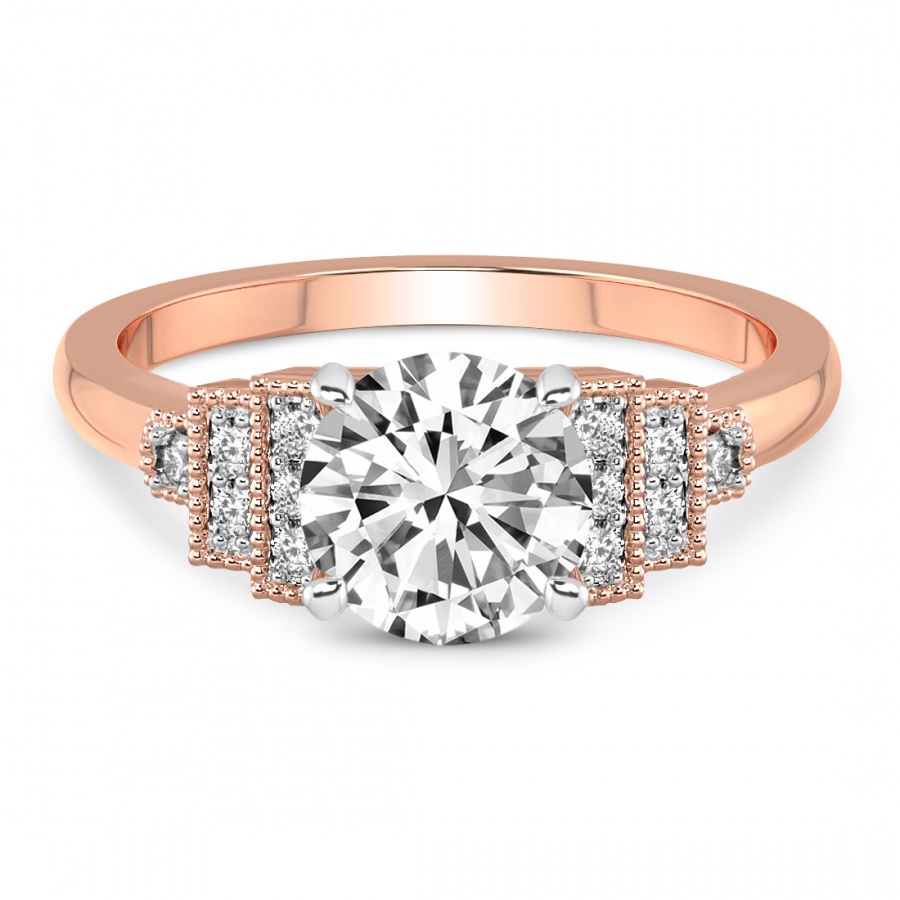 This Delphine Side Stone Diamond Ring is a Round shape ring Engagement type 18k Rose Gold