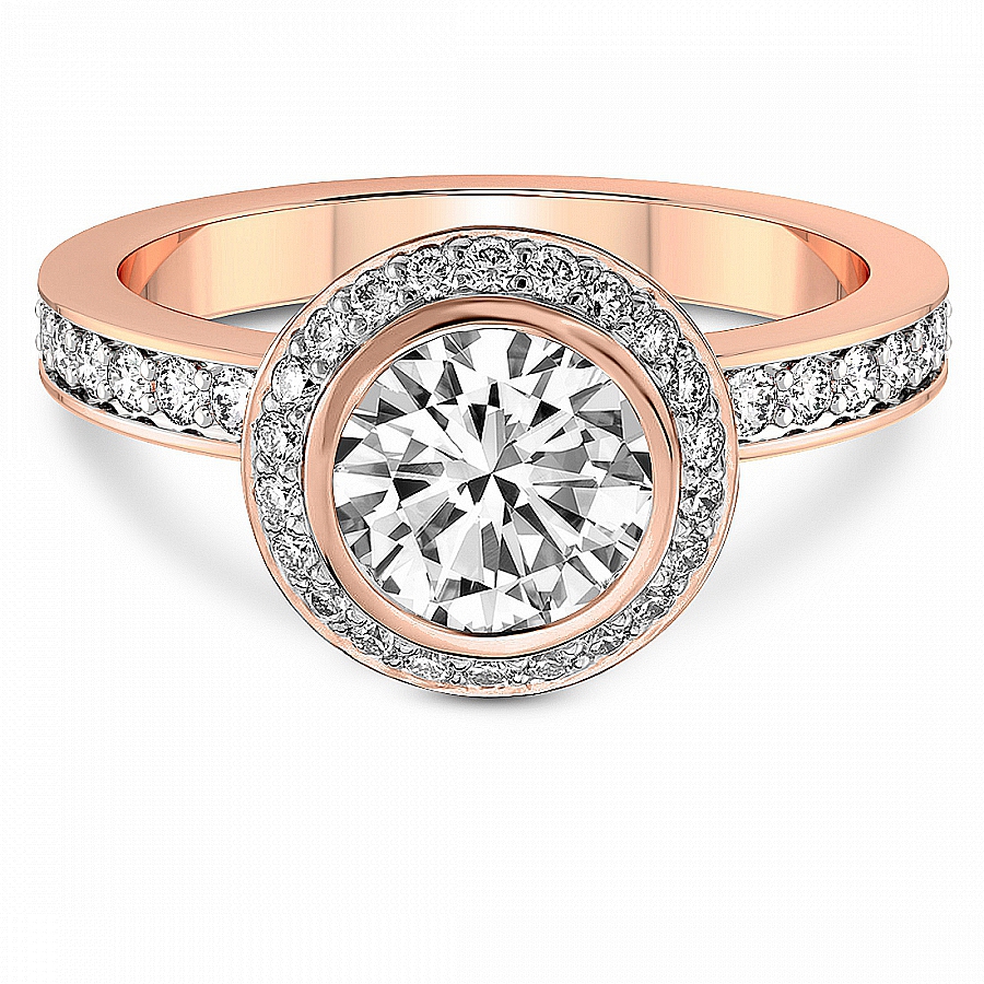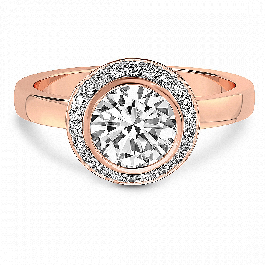 This Alina Dome Bezel Halo Ring is a Round shape ring Engagement type 18k Rose Gold