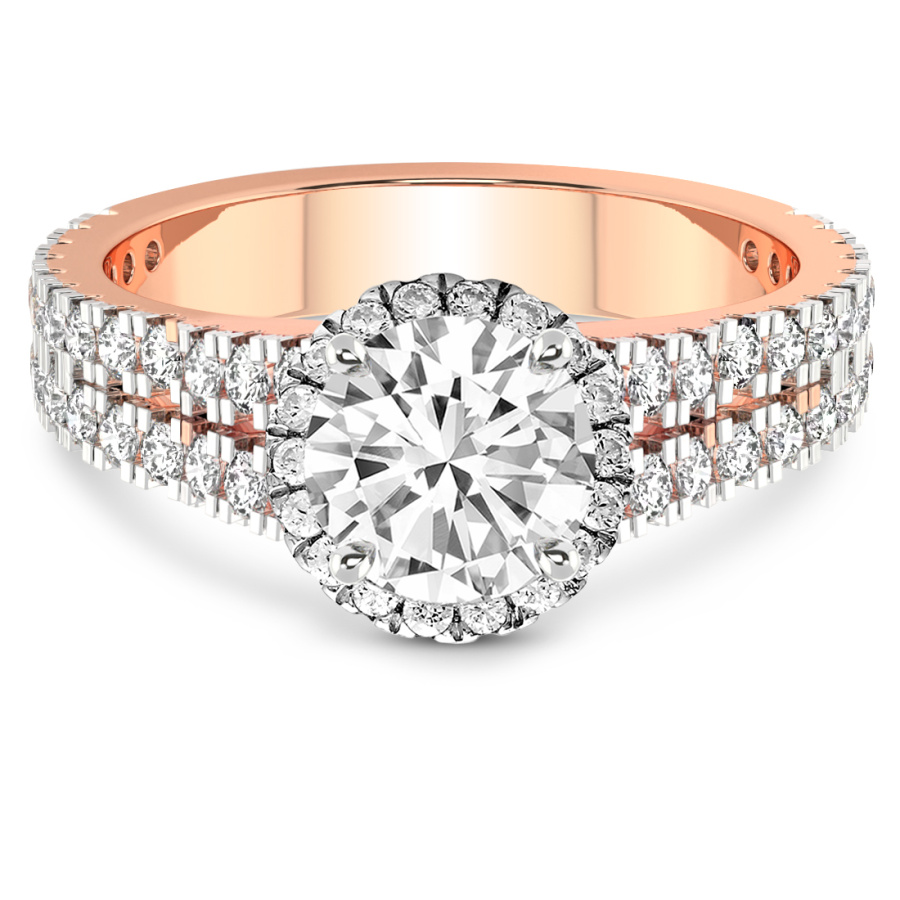 This Noelle Split Shank Halo Diamond Ring is a Round shape ring Engagement type 18k Rose Gold