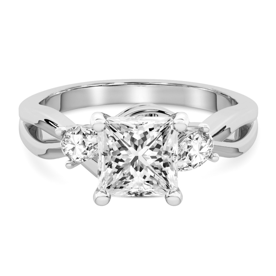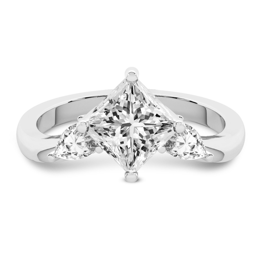 This Hannah Three Stone Diamond Ring is a Princess shape ring Engagement type 18k White Gold