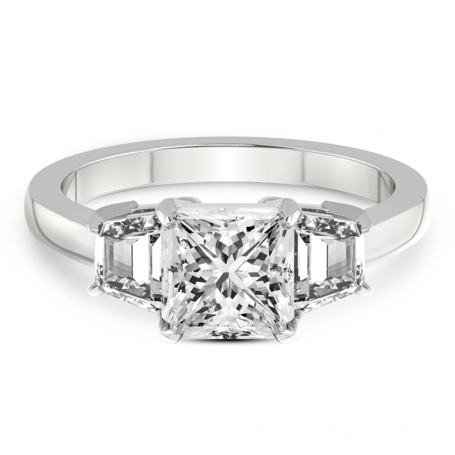 This Fiona Three Stone Side Trapezium Diamond Ring is a Princess shape ring Engagement type 18k White Gold