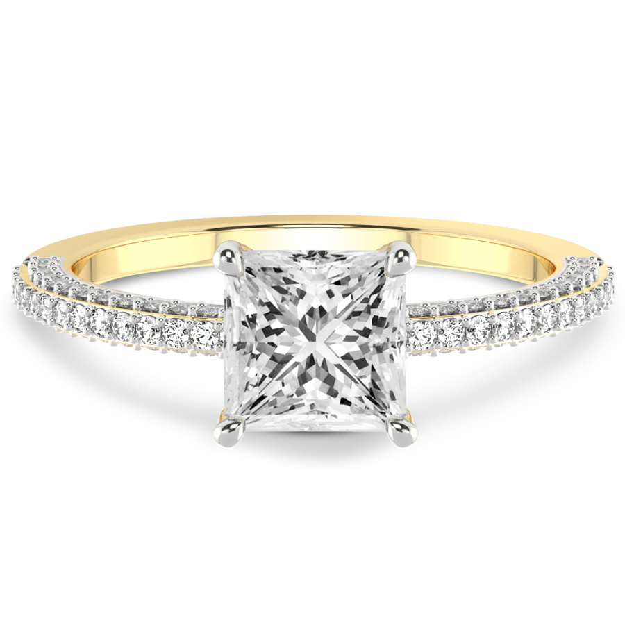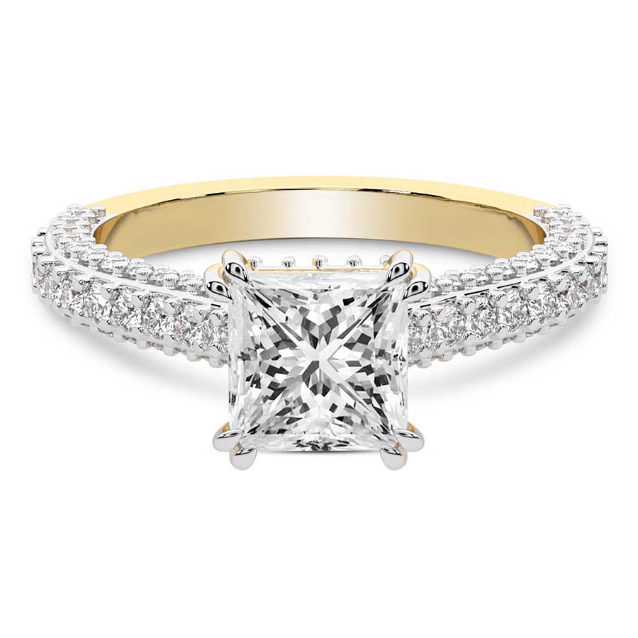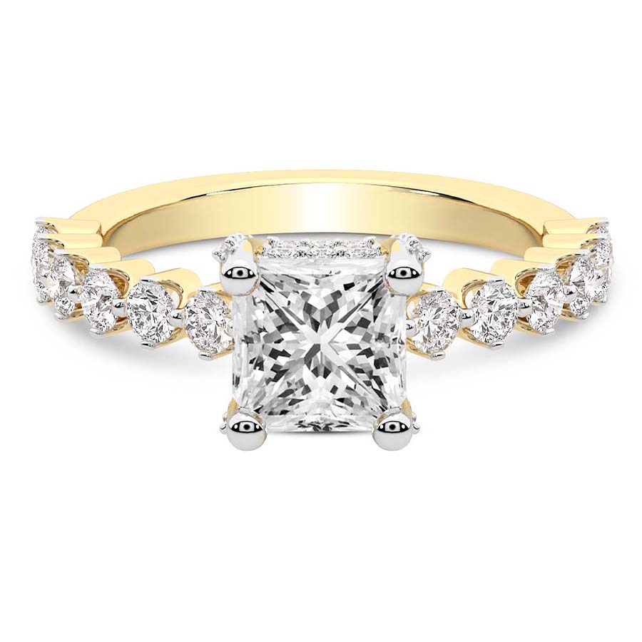 This Ella Floating Side Stones Diamond Ring is a Princess shape ring Engagement type 18k Yellow Gold