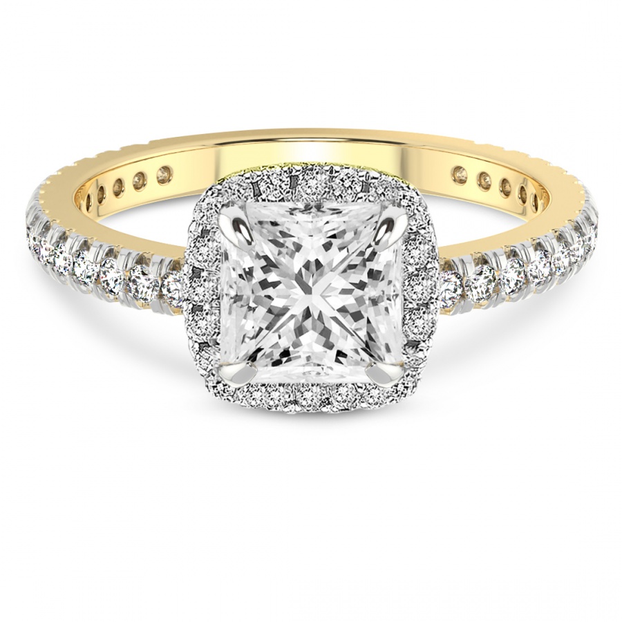 This Abigail Halo Ring is a Princess shape ring Engagement type 18k Yellow Gold