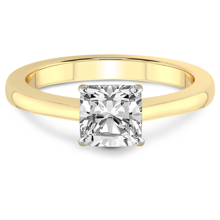 This Kennedy Solitaire Diamond Ring is a Cushion shape ring Engagement type 18k Yellow Gold