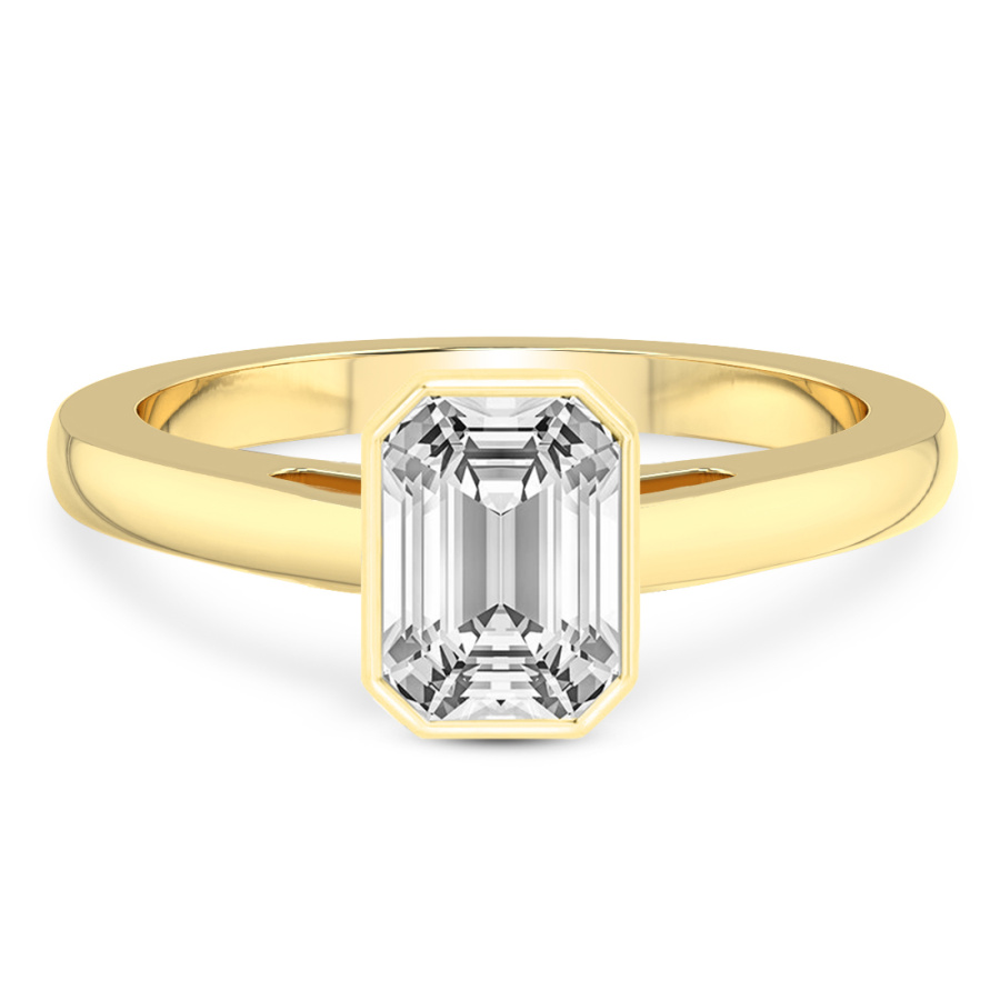 This Emma Solitaire Diamond Ring is a Emerald shape ring Engagement type 18k Yellow Gold