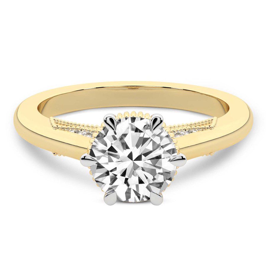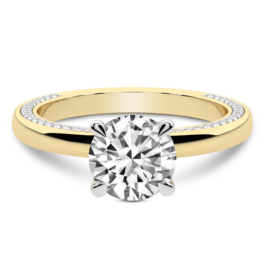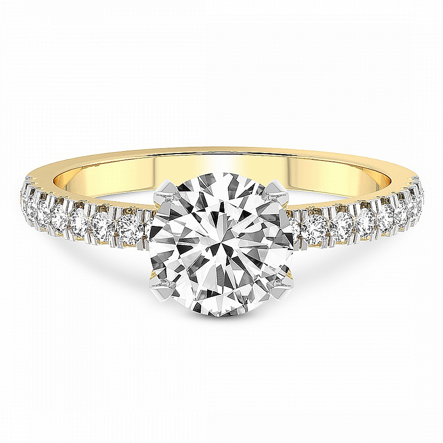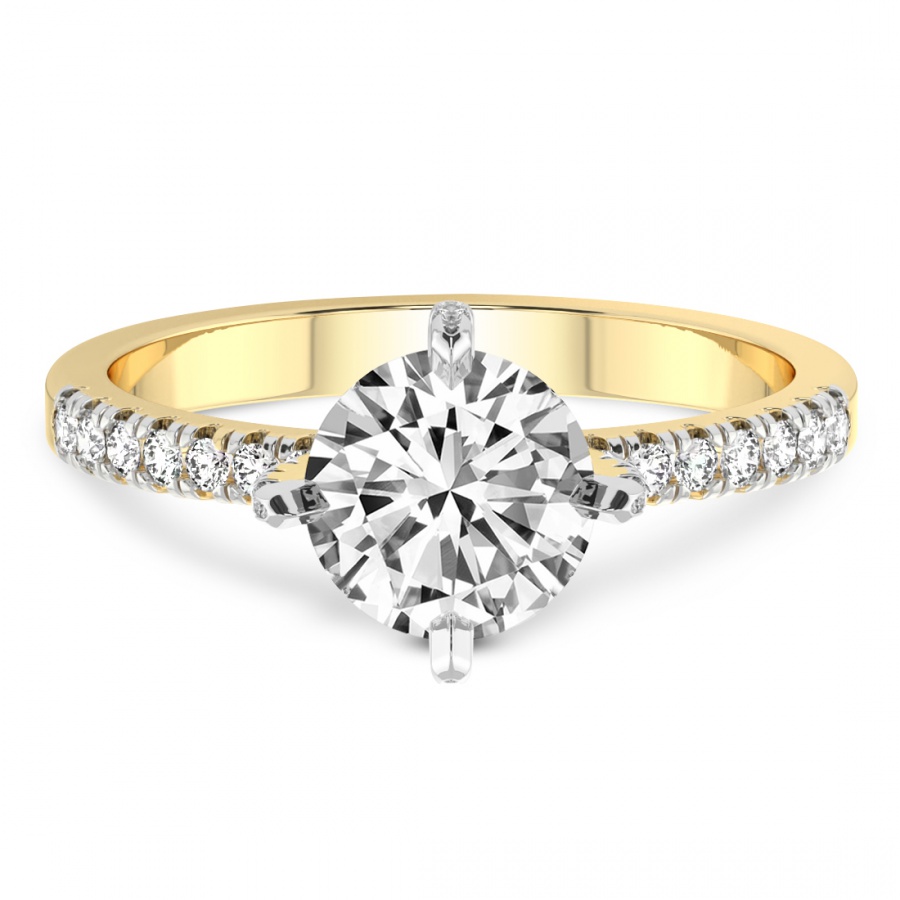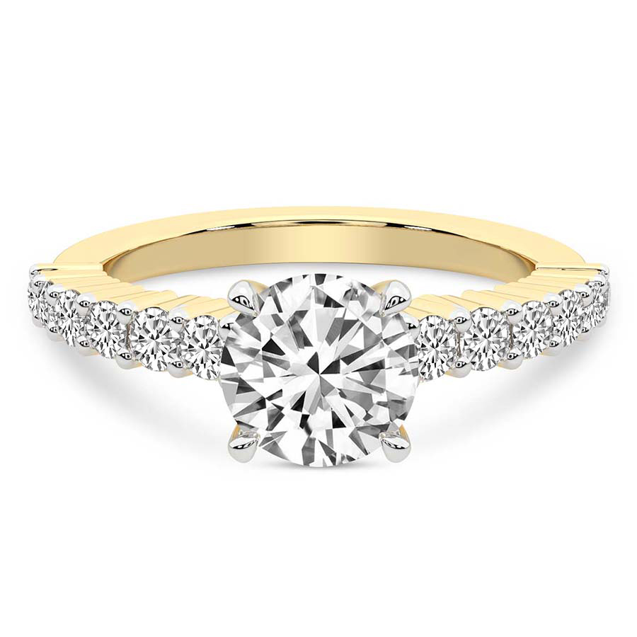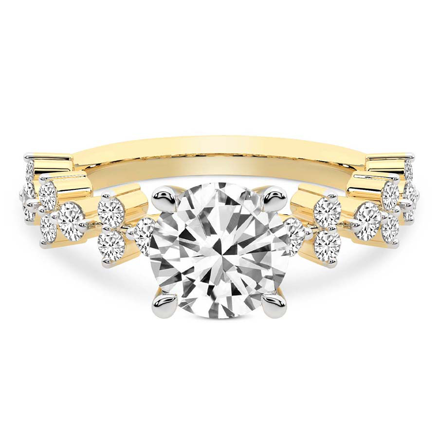 This Madelyn Four Claw Side Stone Ring is a Round shape ring Engagement type 18k Yellow Gold