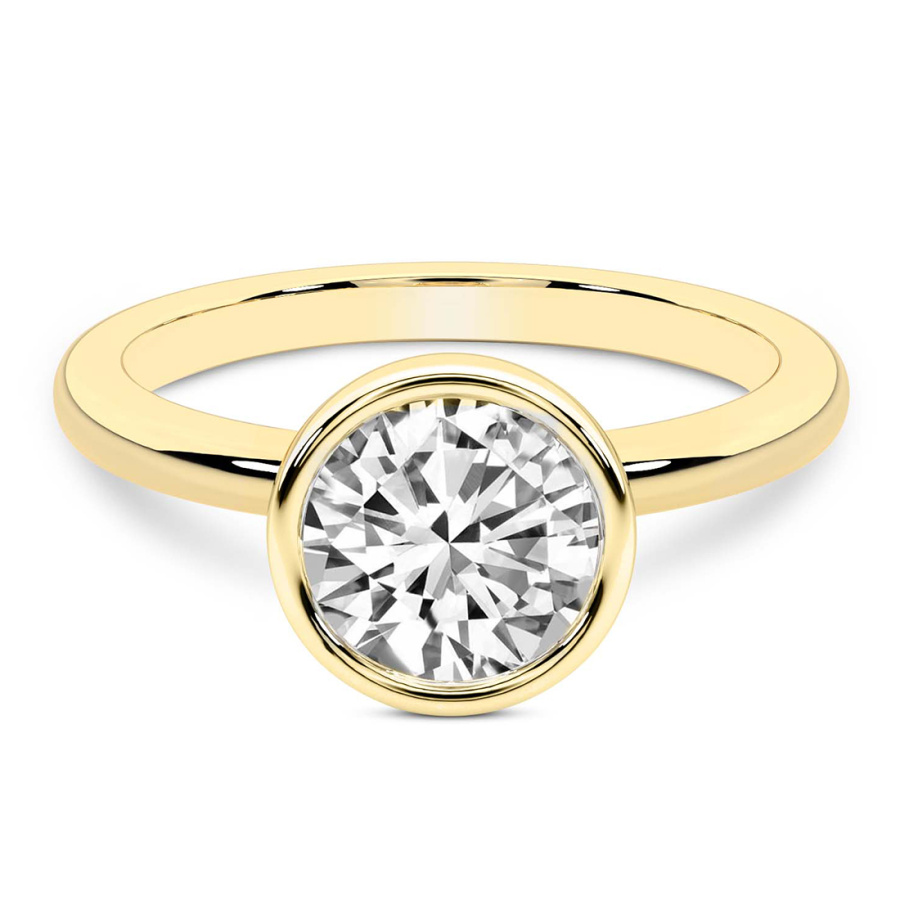 This Ava Classic Bezel Solitaire Diamond Ring is a Round shape ring Engagement type 18k Yellow Gold