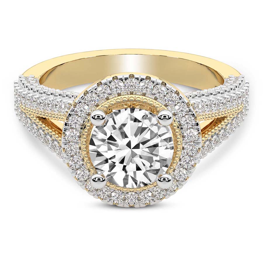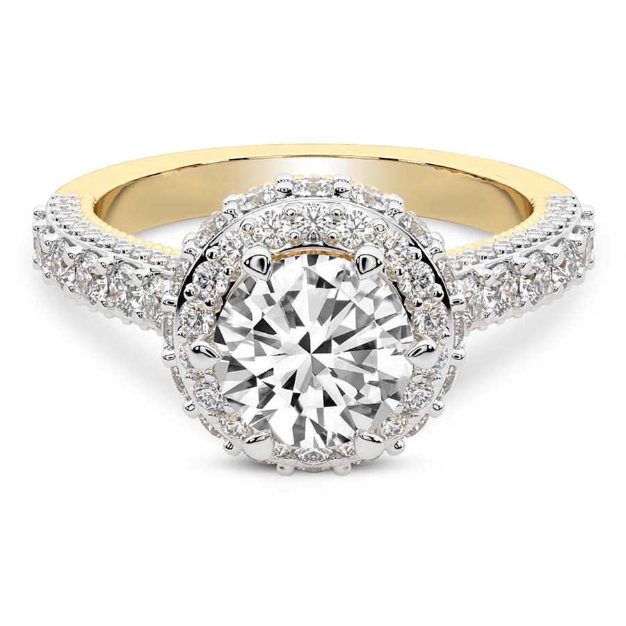 This Lilou Margot Halo Diamond Ring is a Round shape ring Engagement type 18k Yellow Gold
