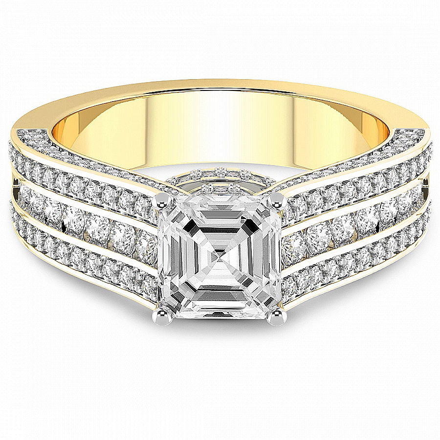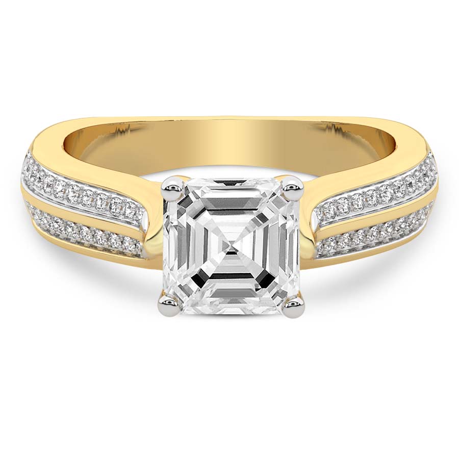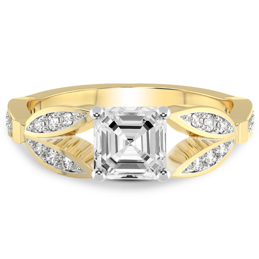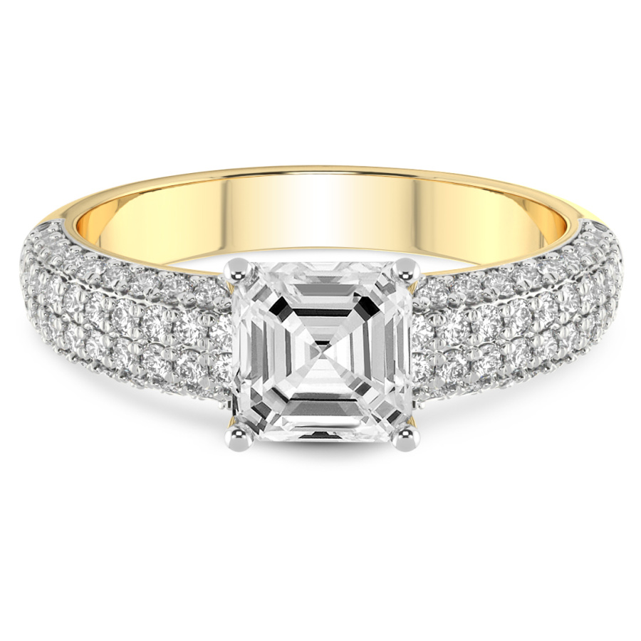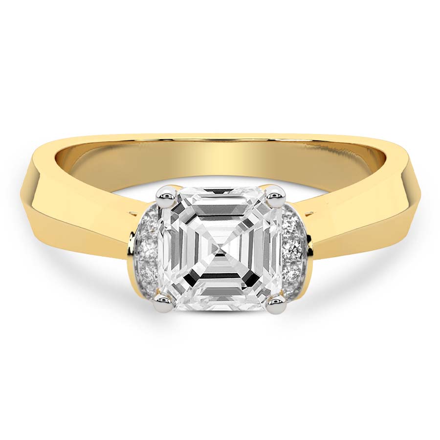 This Clementine Side Cuff Lab Diamond Ring is a Asscher shape ring Engagement type 18k Yellow Gold