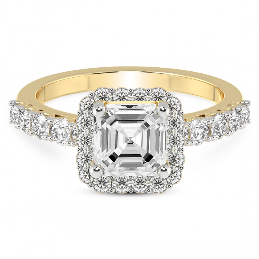 This Ottilie Split Shank Halo Lab Diamond Ring is a Asscher shape ring Engagement type 18k Yellow Gold