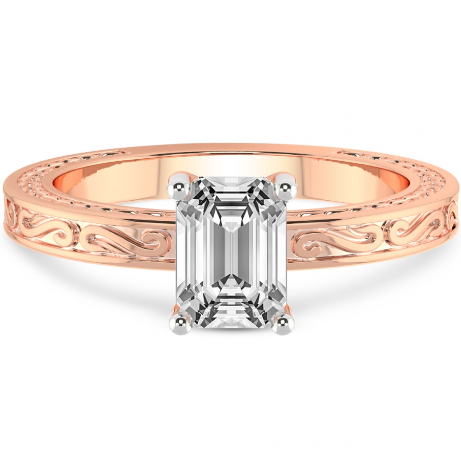 This Roxane Solitaire Diamond Ring is a Emerald shape ring Engagement type 18k Rose Gold