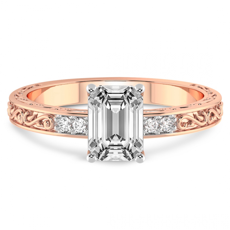 This Melanie Side Stone Diamond Ring is a Emerald shape ring Engagement type 18k Rose Gold
