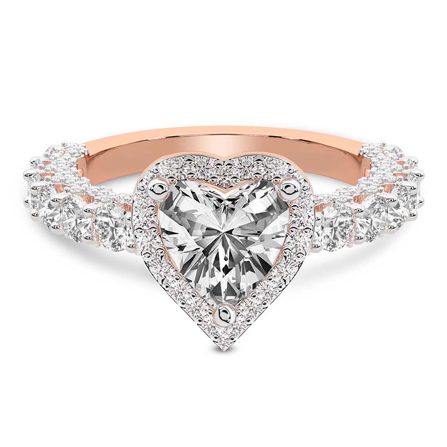 This Savannah Halo Diamond Ring is a Heart shape ring Engagement type 18k Rose Gold