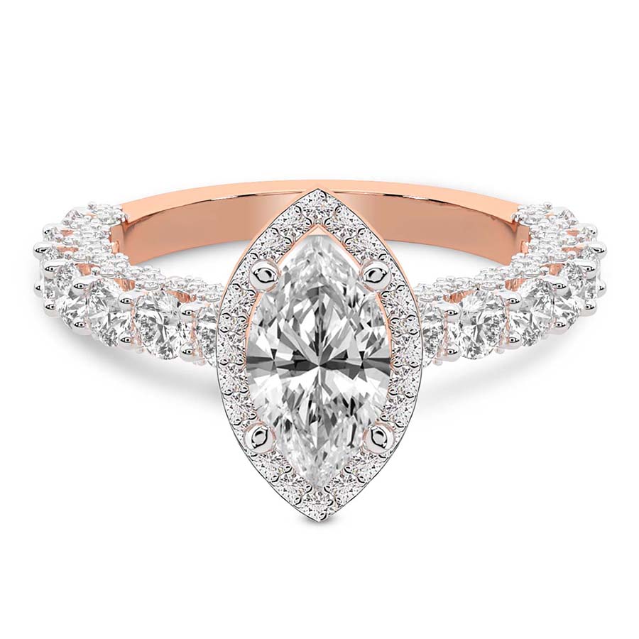 This Savannah Halo Diamond Ring is a Marquise shape ring Engagement type 18k Rose Gold