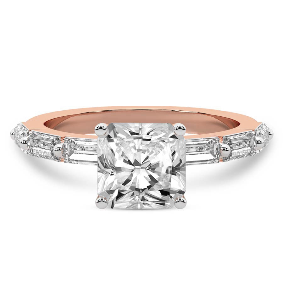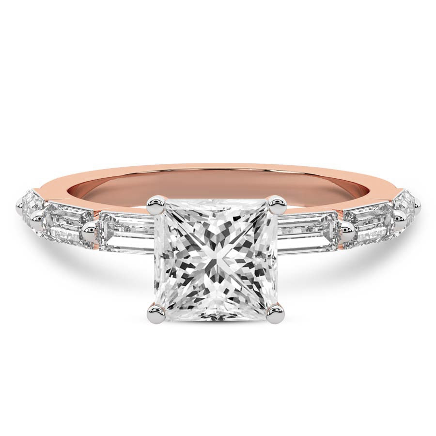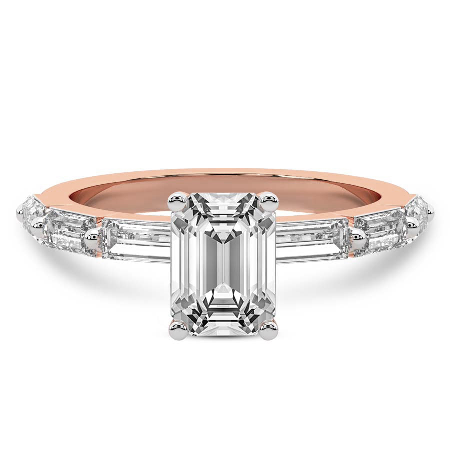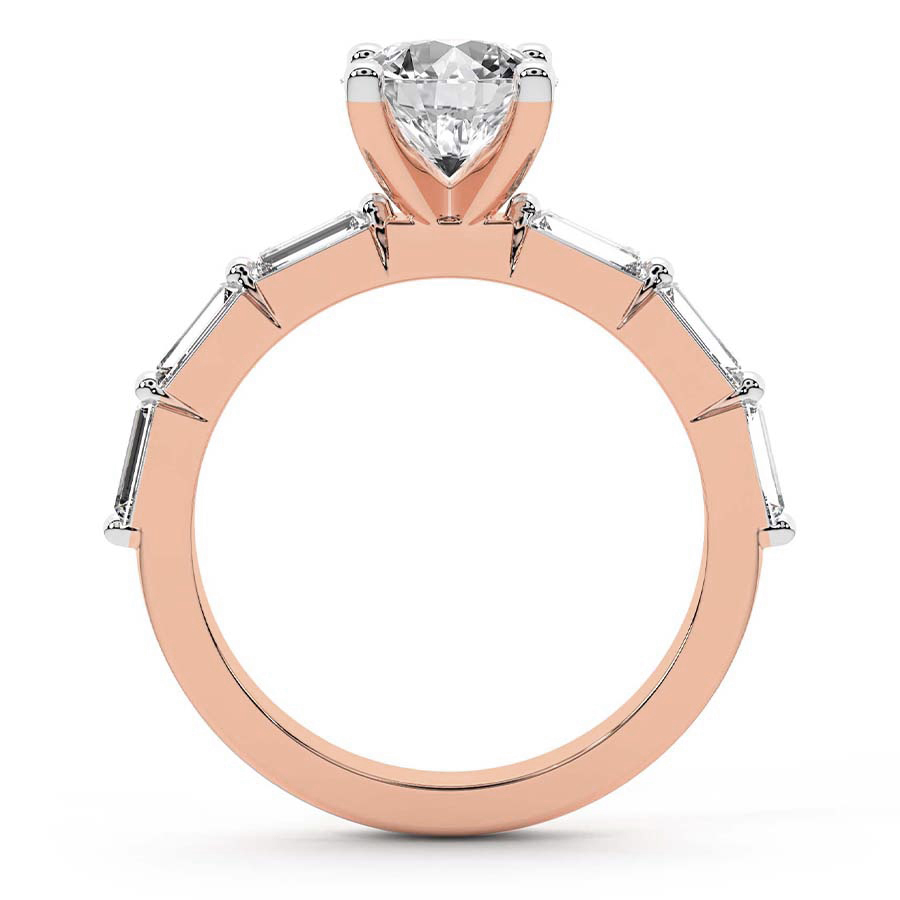 This Bella Baguette Side Stone Ring is a Round shape ring Engagement type 18k Rose Gold