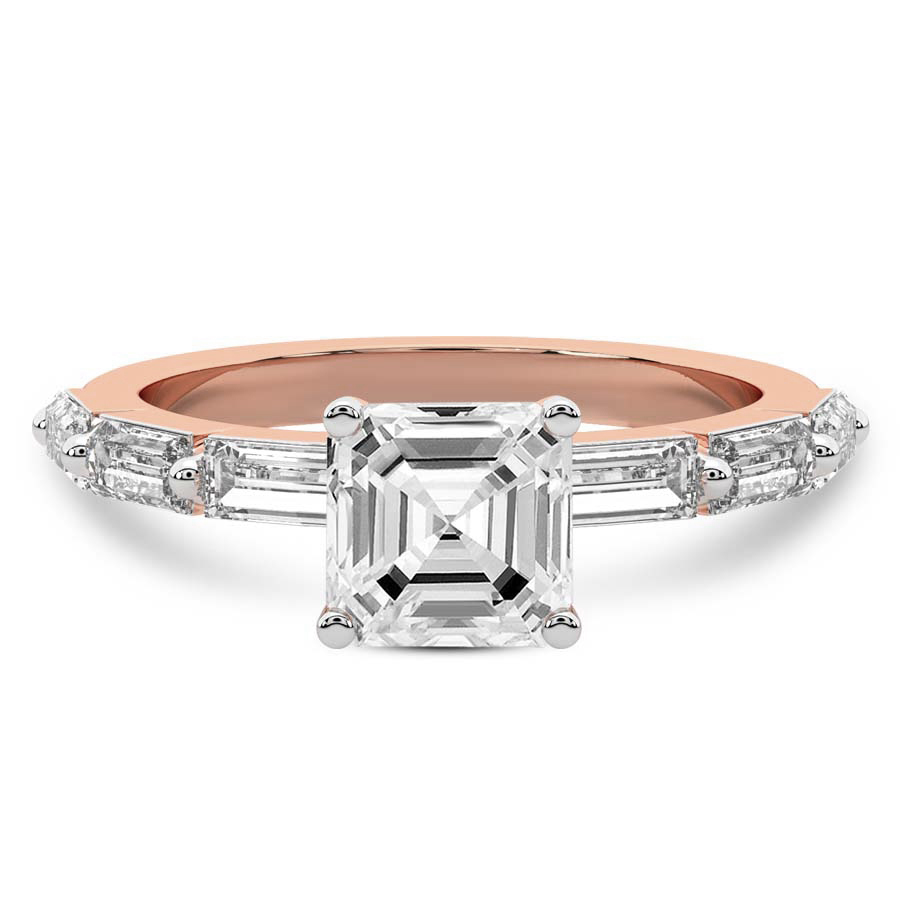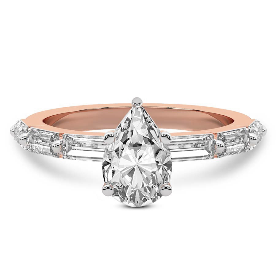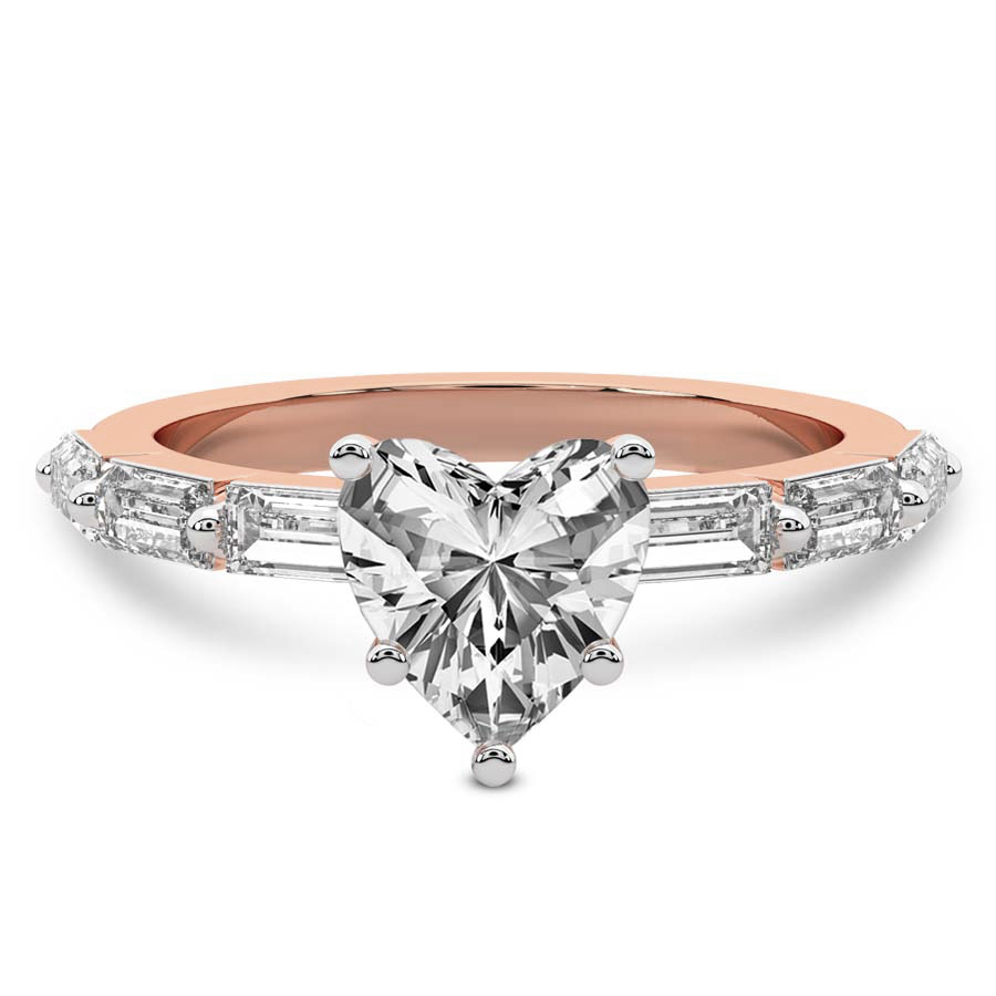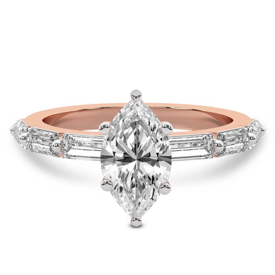 This Bella Baguette Side Stone Ring is a Round shape ring Engagement type 18k Rose Gold