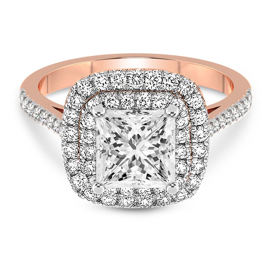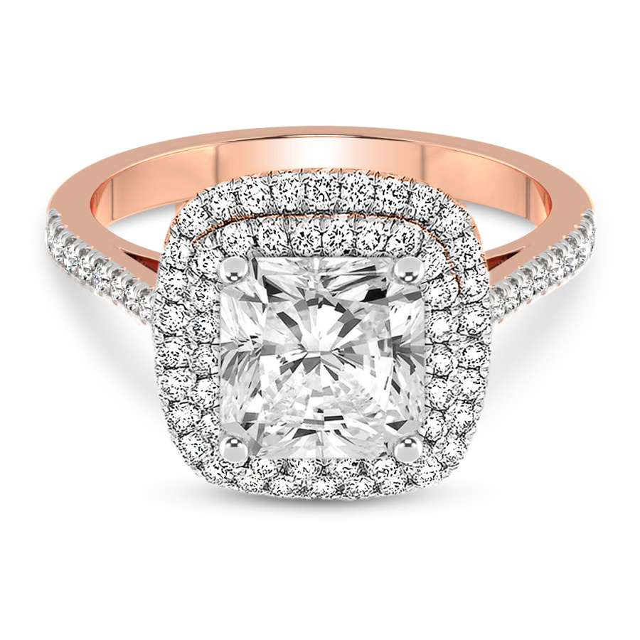 The Brianna Double Halo Diamond Ring is a masterpiece of modern romance, meticulously designed for the woman who desires a seamless blend of vintage charm and contemporary brilliance. At the heart of this exquisite 18k rose gold engagement ring lies a magnificent round-cut diamond, selected for its superior fire and captivating clarity. This central stone is elegantly embraced by two shimmering tiers of pavé-set diamonds, creating a breathtaking double halo that significantly amplifies the radiance and visual impact of the centerpiece. The warm, feminine blush of the 18k rose gold setting provides a sophisticated contrast to the icy brilliance of the diamonds, offering a romantic aesthetic that is both timeless and uniquely modern. The allure continues along the delicate shank, which is adorned with meticulously hand-set accent diamonds that catch the light from every conceivable angle. Expertly crafted with precision and passion, the Brianna ring is far more than a mere piece of jewelry; it serves as a profound symbol of an everlasting commitment and a lifetime of shared dreams. Whether catching the soft glow of candlelight or the brilliance of the midday sun, the intricate double halo silhouette ensures a majestic presence that is truly impossible to ignore. This luxury rose gold diamond ring represents the very pinnacle of artisanal craftsmanship, making it the quintessential choice for a proposal destined to be remembered forever. Choose the Brianna for an unparalleled expression of love that marries opulent design with the soft, ethereal allure of fine rose gold.