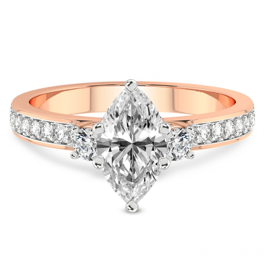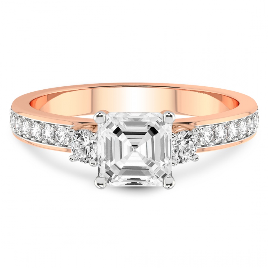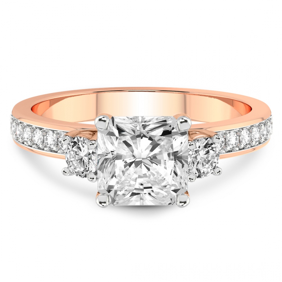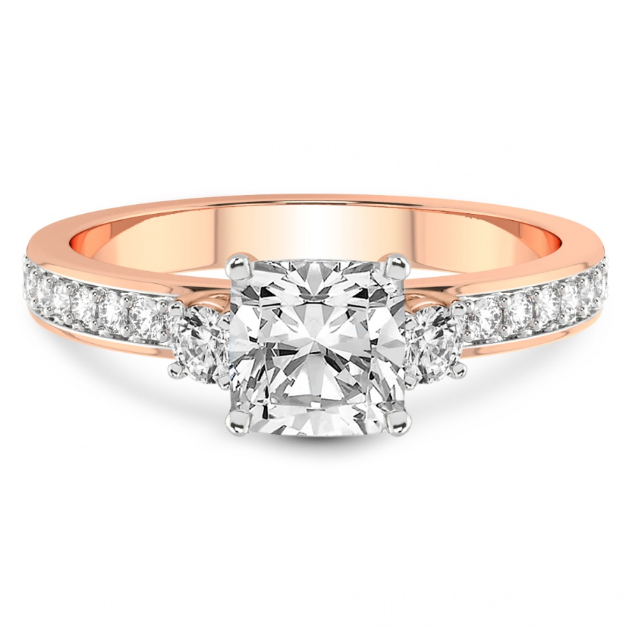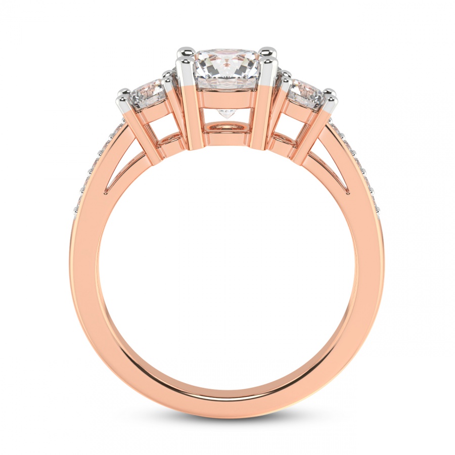 This Camila Three Stone Diamond Ring is a Round shape ring Engagement type 18k Rose Gold