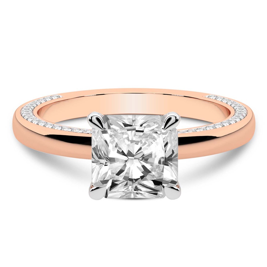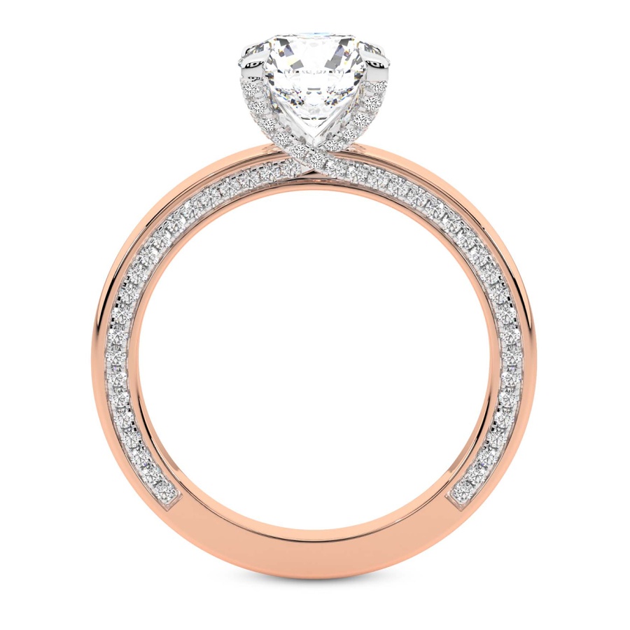 Embrace a lifetime of romance with the Cora Round Shape Engagement Ring, a masterpiece of delicate design and timeless sophistication. Crafted from the finest 18k rose gold, this exquisite piece offers a warm, blush-toned glow that beautifully complements every skin tone. At the heart of this stunning creation sits a brilliant round diamond, meticulously selected for its fire and clarity. The petite solitaire setting allows the center stone to take center stage, capturing the light from every angle to create a mesmerizing dance of brilliance. Unlike traditional solitaires, the Cora design features a sophisticated diamond-studded band that adds an extra layer of sparkle, ensuring that your commitment shines with unparalleled radiance. Each Cora engagement ring is a testament to artisan craftsmanship and refined luxury. The slender profile of the 18k rose gold band provides a modern yet classic silhouette, making it an ideal choice for the contemporary bride who appreciates understated elegance. The intricate detailing of the diamond-accented shank elevates this ring from a simple token of affection to a breathtaking work of art. Whether you are planning a surprise proposal or choosing a symbol of your love together, this round shape solitaire offers a perfect balance of grace and grandeur. It is more than just jewelry; it is an heirloom in the making, designed to be cherished for generations. Experience the pinnacle of luxury with this signature piece, where every facet reflects the enduring strength and beauty of your unique love story.