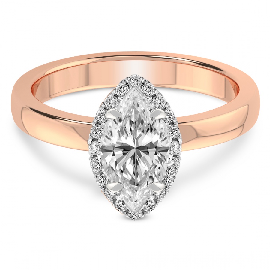 This Harper Hidden Accents Halo Ring is a Round shape ring Engagement type 18k Rose Gold