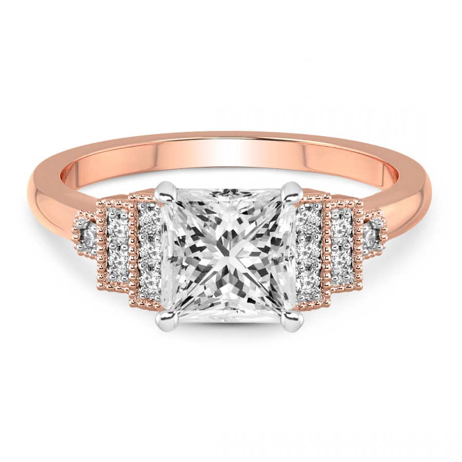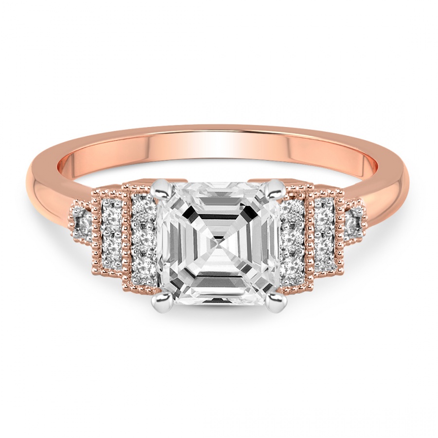 This Laila Tapering Side Stone Ring is a Round shape ring Engagement type 18k Rose Gold