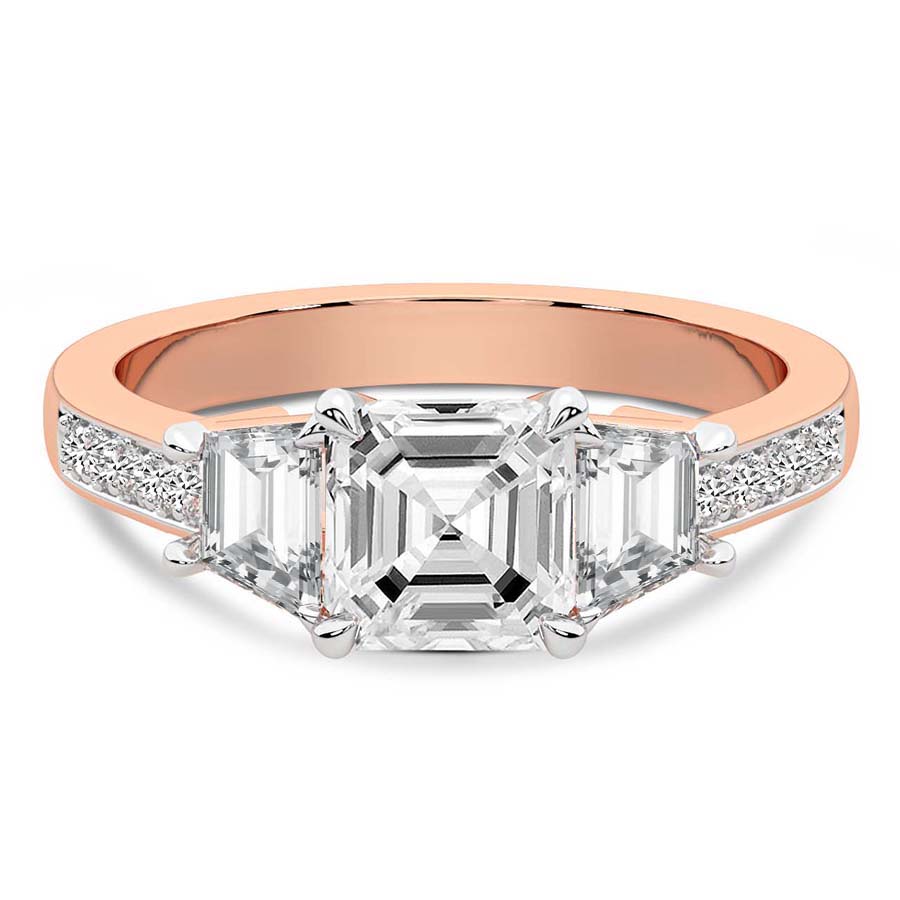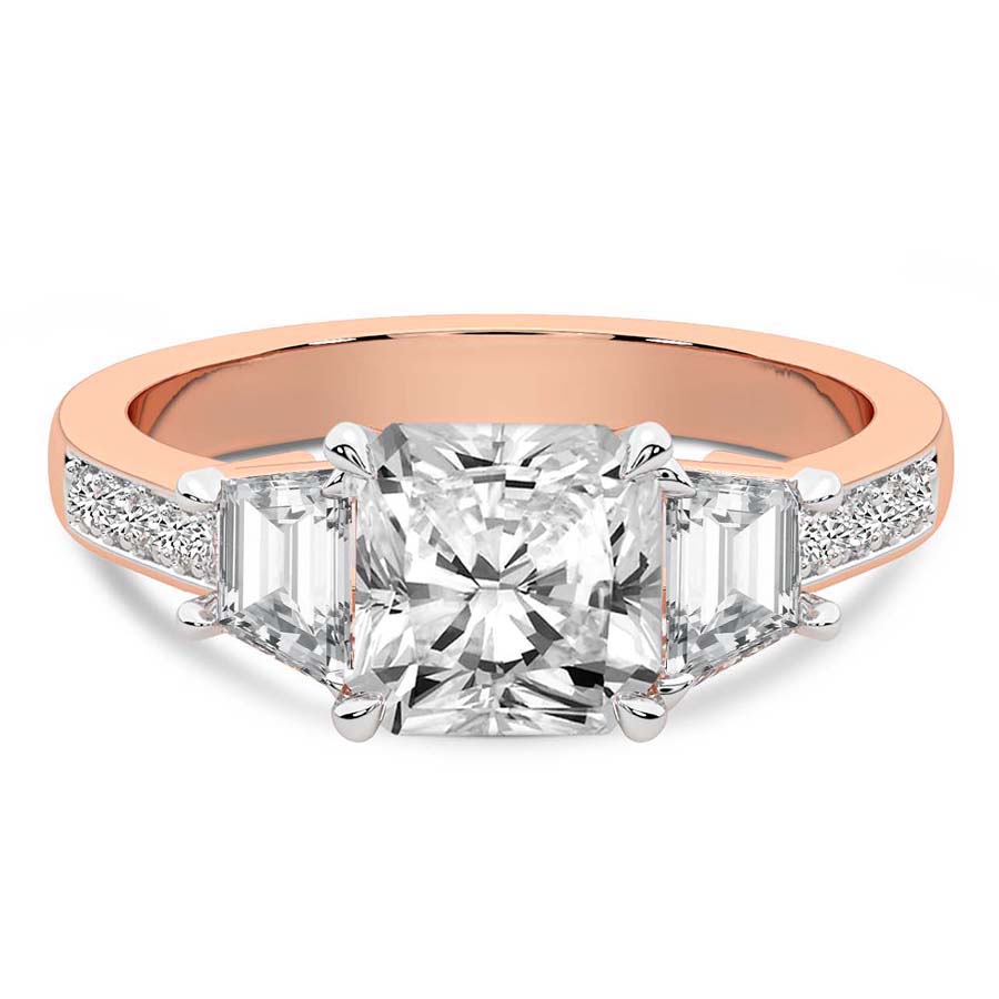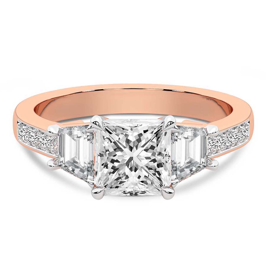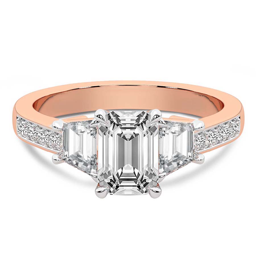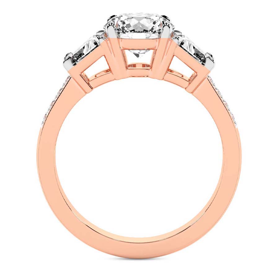 This Madeleine Trapezoid Three Stone Ring is a Round shape ring Engagement type 18k Rose Gold