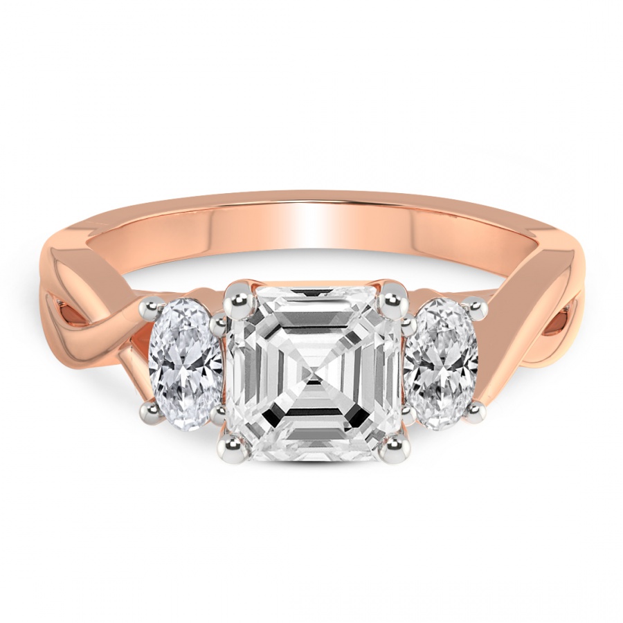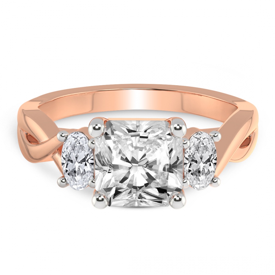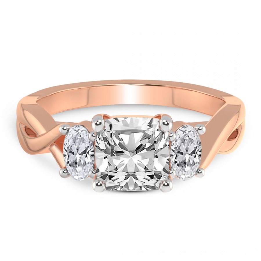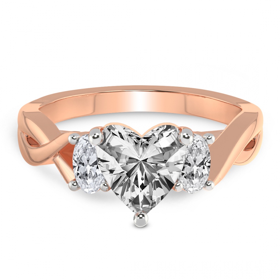 The Noorie Three-Stone Side Oval Diamond Ring is a sublime embodiment of romantic sophistication and master craftsmanship. At the heart of this exquisite piece lies a magnificent round brilliant-cut center diamond, renowned for its unparalleled fire and exceptional luminosity. This central masterpiece is elegantly flanked by two perfectly proportioned oval-shaped side diamonds, creating a graceful silhouette that maximizes sparkle and visual depth. Cast in the warm, ethereal glow of 18k rose gold, the setting offers a contemporary twist on the classic trilogy design, symbolizing the past, present, and future of a shared journey. The delicate blush tones of the precious metal harmonize beautifully with the icy brilliance of the diamonds, making it a distinctive choice for the modern bride who seeks both tradition and individuality. Every facet is meticulously polished to ensure that the ring captures the light from every angle, radiating a captivating brilliance that is impossible to ignore. This handcrafted engagement ring is not merely a piece of jewelry but a timeless heirloom designed to be cherished for a lifetime. Whether you are celebrating an eternal promise or a milestone moment, the Noorie ring stands as a testament to enduring love and refined luxury. Its balanced proportions and luxurious finish make it a versatile yet striking statement piece that complements any style with effortless grace and prestige.
