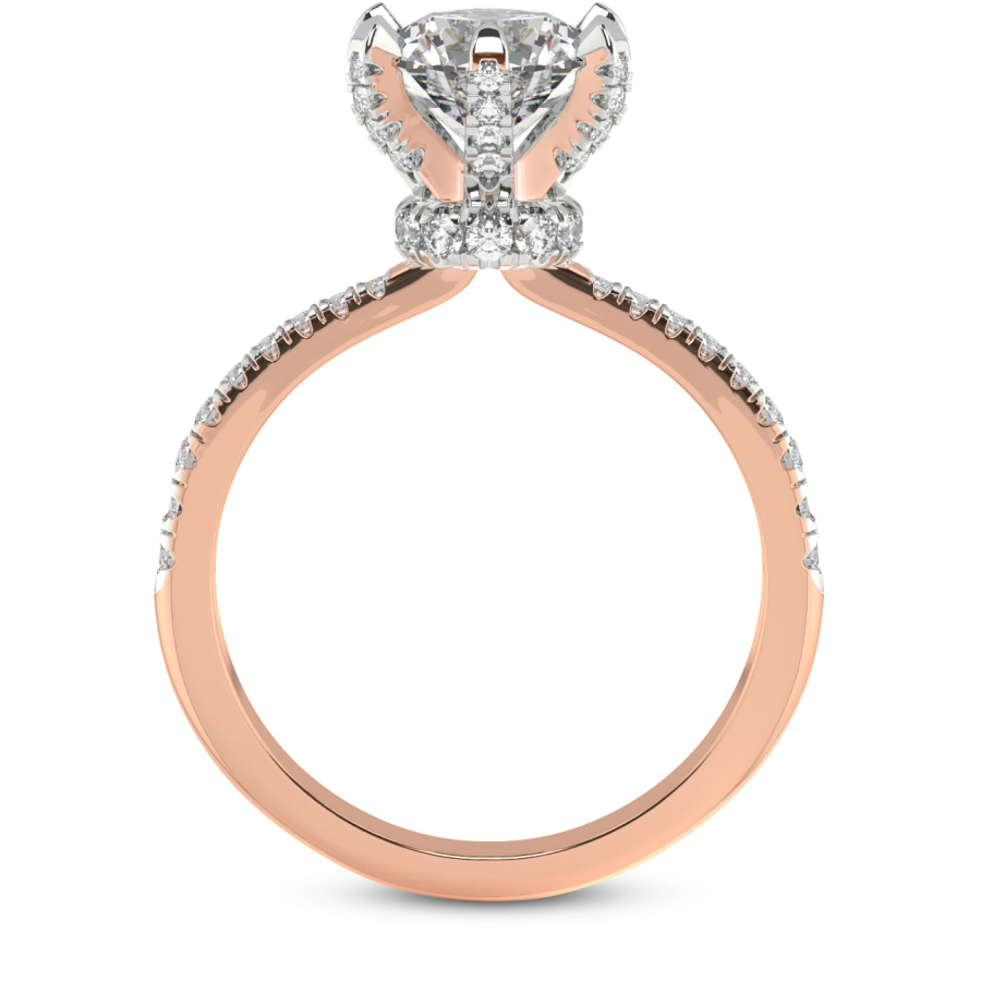 The Ophelie Secret Halo Round Diamond Engagement Ring is a masterclass in understated elegance and contemporary romance. At the heart of this exquisite piece lies a breathtaking round brilliant cut diamond, meticulously selected for its superior fire and brilliance. This central stone is cradled within a delicate four-claw setting, allowing maximum light to penetrate and dance through its facets. What truly distinguishes the Ophelie design is its enchanting secret halo. Discreetly nestled beneath the primary stone, a delicate circle of pavé-set diamonds offers a shimmering surprise that catches the light from every angle, providing an intimate detail known only to the wearer. Crafted in lustrous 18k rose gold, the band offers a warm, romantic blush that beautifully complements all skin tones. The slender, polished band ensures the focal diamond remains the protagonist, creating a silhouette that is both modern and timeless. This engagement ring is designed for the woman who appreciates fine craftsmanship and seeks a piece that reflects her unique grace. Every curve of this 18k rose gold setting is finished to the highest standards of luxury, ensuring lasting durability and a comfortable fit for a lifetime of wear. Whether viewed from above or in profile, the Ophelie Secret Halo ring embodies a sophisticated charm that transcends fleeting trends, making it the perfect symbol of eternal commitment. This artisanal piece represents the pinnacle of jewelry design, blending classic allure with a hidden, modern twist that defines true luxury.