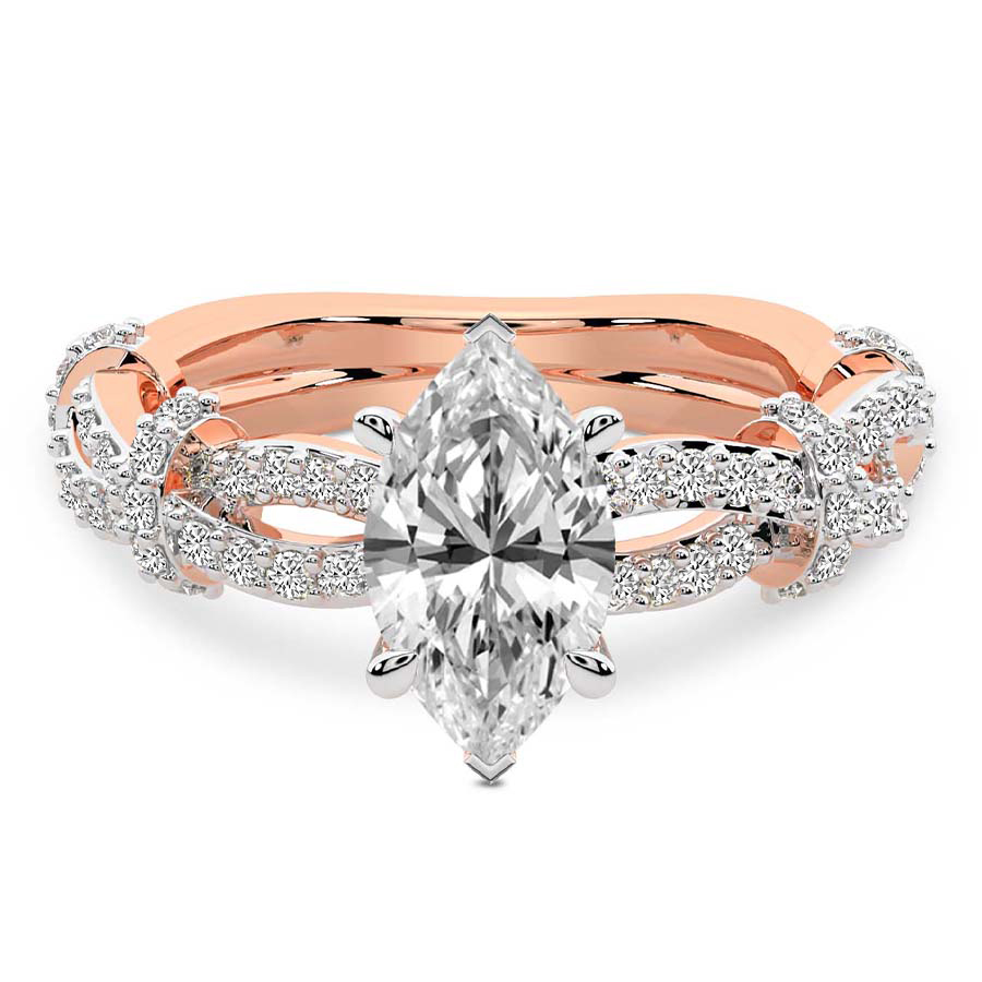 This Pauline Double Twist Side Stone Ring is a Round shape ring Engagement type 18k Rose Gold