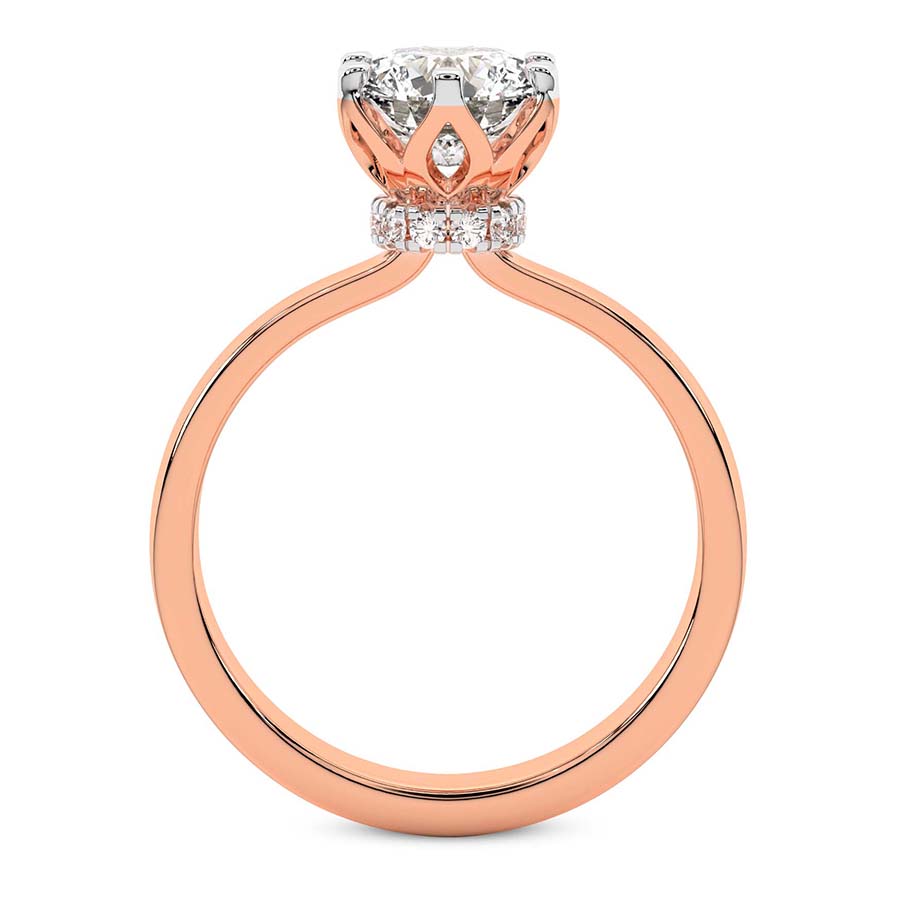 This Taliaing Petal Secret Halo Ring is a Round shape ring Engagement type 18k Rose Gold