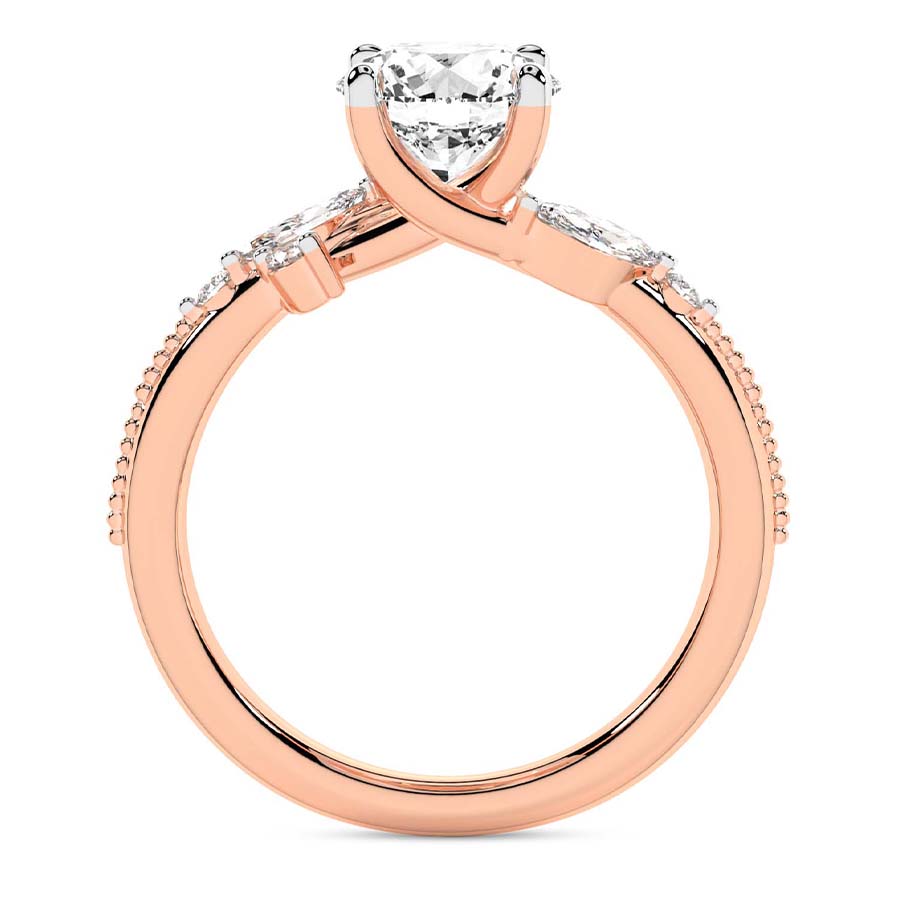 This Yara Crisscross Side Stone Ring is a Round shape ring Engagement type 18k Rose Gold