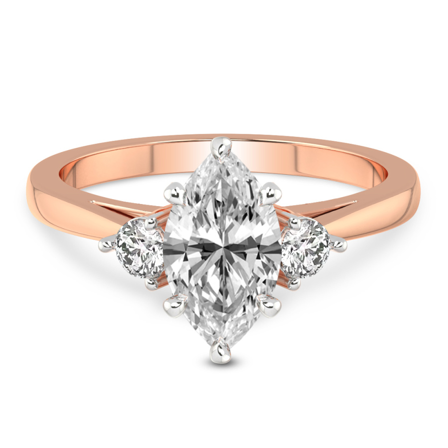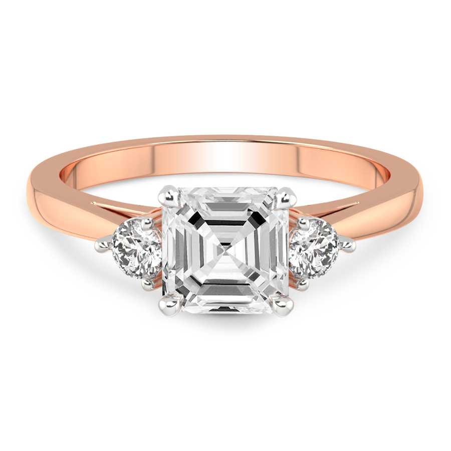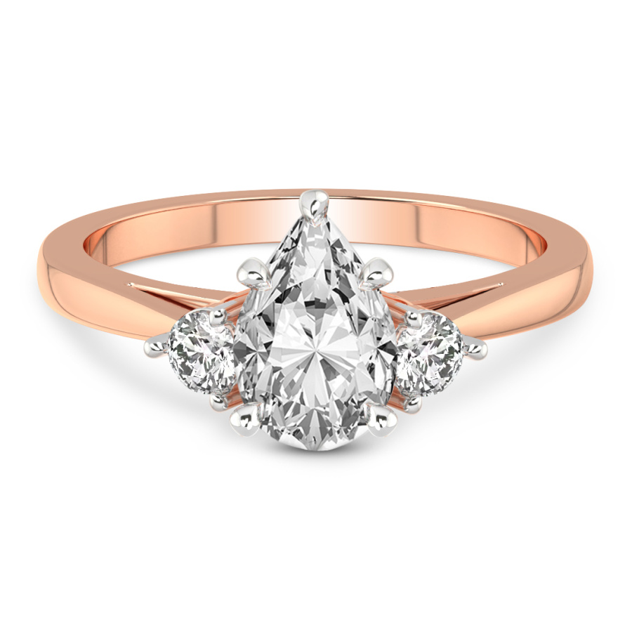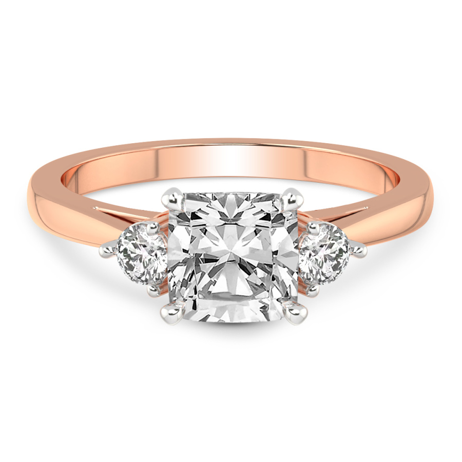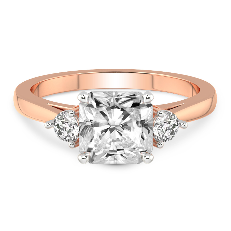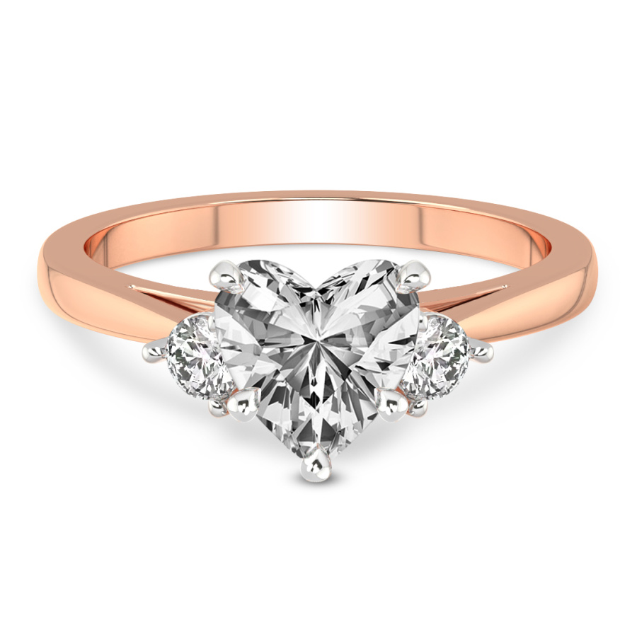 Indulge in the timeless allure of the Zoe Three Stone Diamond Engagement Ring, a masterpiece designed to celebrate your unique love story with unparalleled radiance. Meticulously handcrafted in exquisite 18k rose gold, this stunning piece offers a warm, romantic glow that perfectly complements the fiery brilliance of its ethically sourced diamonds. At its heart lies a magnificent round brilliant cut center stone, flawlessly flanked by two shimmering side diamonds to create a classic trilogy silhouette. This sophisticated design symbolizes your shared journey through the past, present, and future, making it a profound choice for a lifetime commitment. The lustrous 18k rose gold band provides a modern yet vintage-inspired foundation, accentuating the natural fire and scintillation of each carefully selected diamond. Whether you are seeking a symbol of enduring devotion or a breathtaking statement of luxury, the Zoe ring captures the essence of refined elegance. Each facet is polished to perfection, ensuring that this round shape diamond ring catches the light from every angle. Elevate your proposal with a piece that transcends trends, offering a harmonious blend of traditional craftsmanship and contemporary style. With its graceful curves and prestigious materials, the Zoe Three Stone Diamond Ring in 18k rose gold remains a quintessential emblem of romance and sophisticated taste for the discerning bride who values both heritage and brilliance.