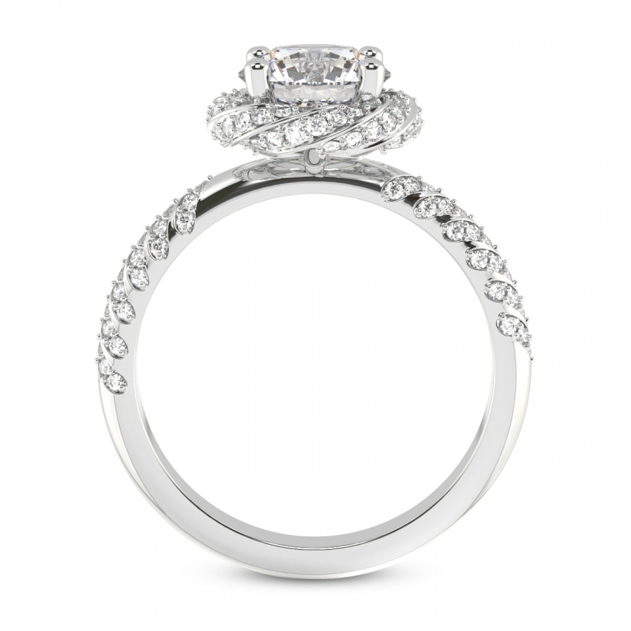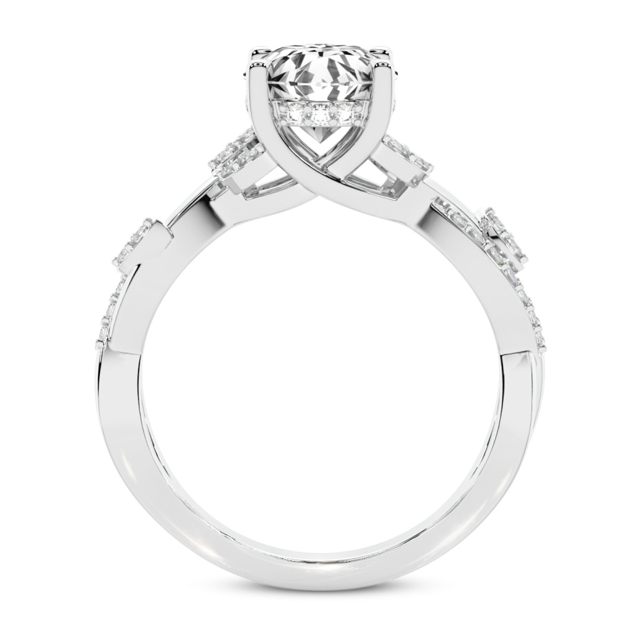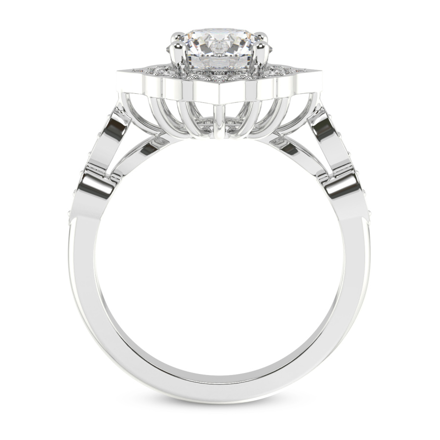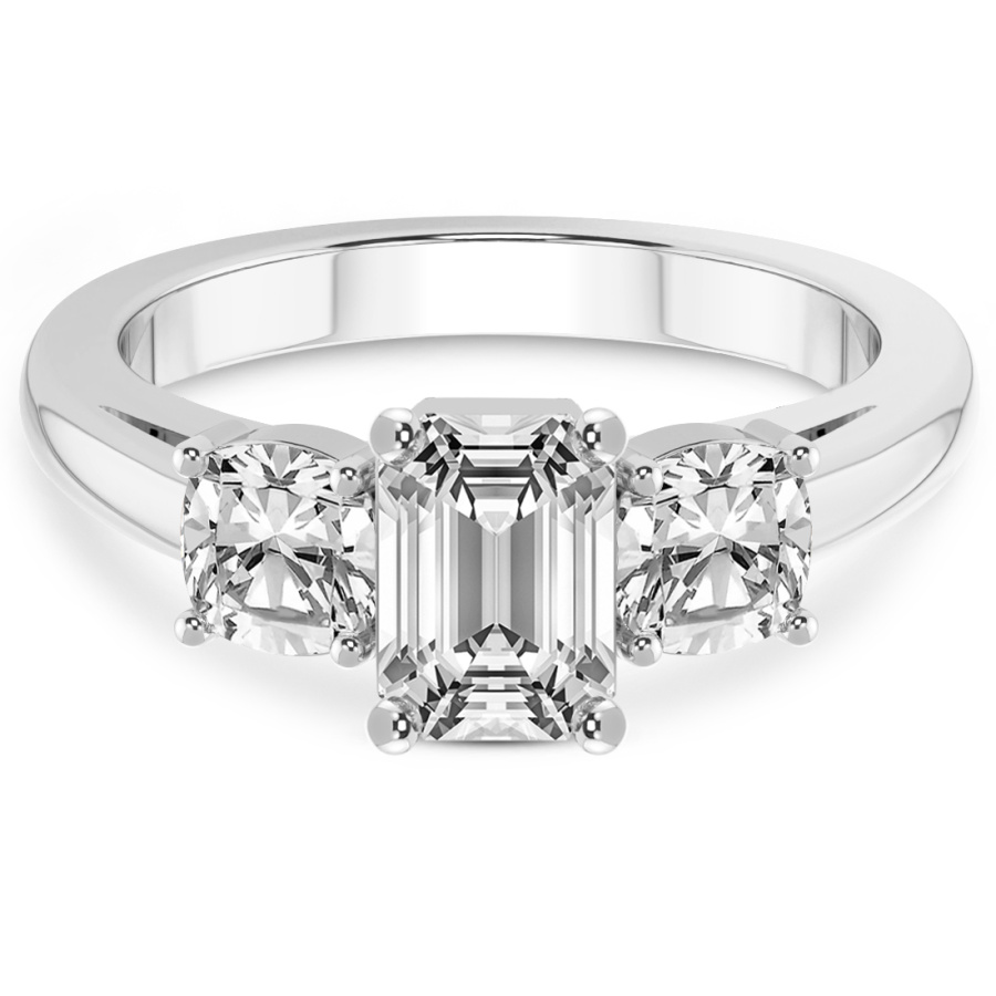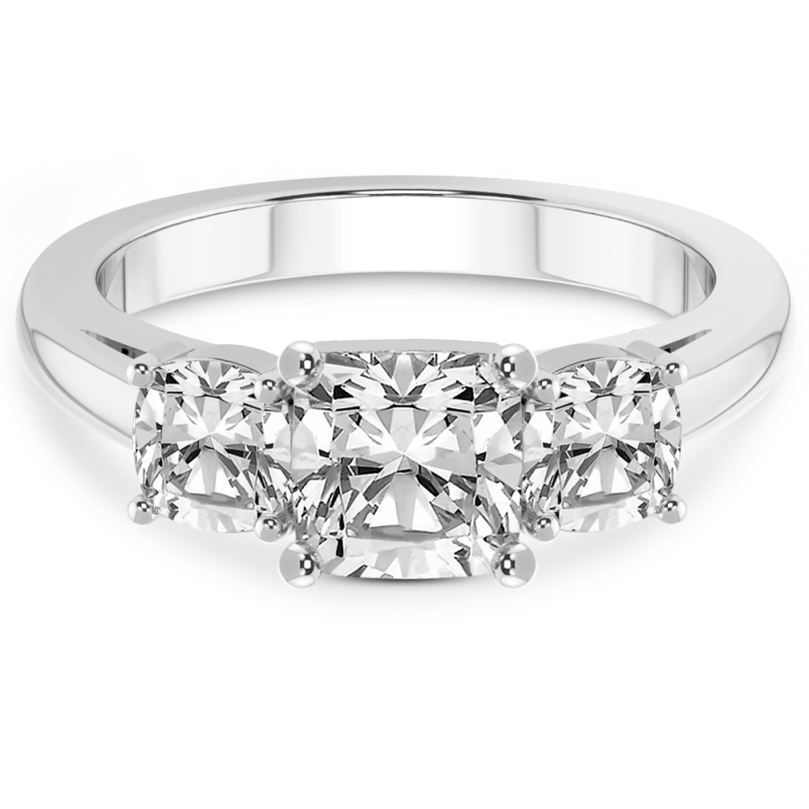 This Alice Three Stone Side Cushion Diamond Ring is a Round shape ring Engagement type 18k White Gold